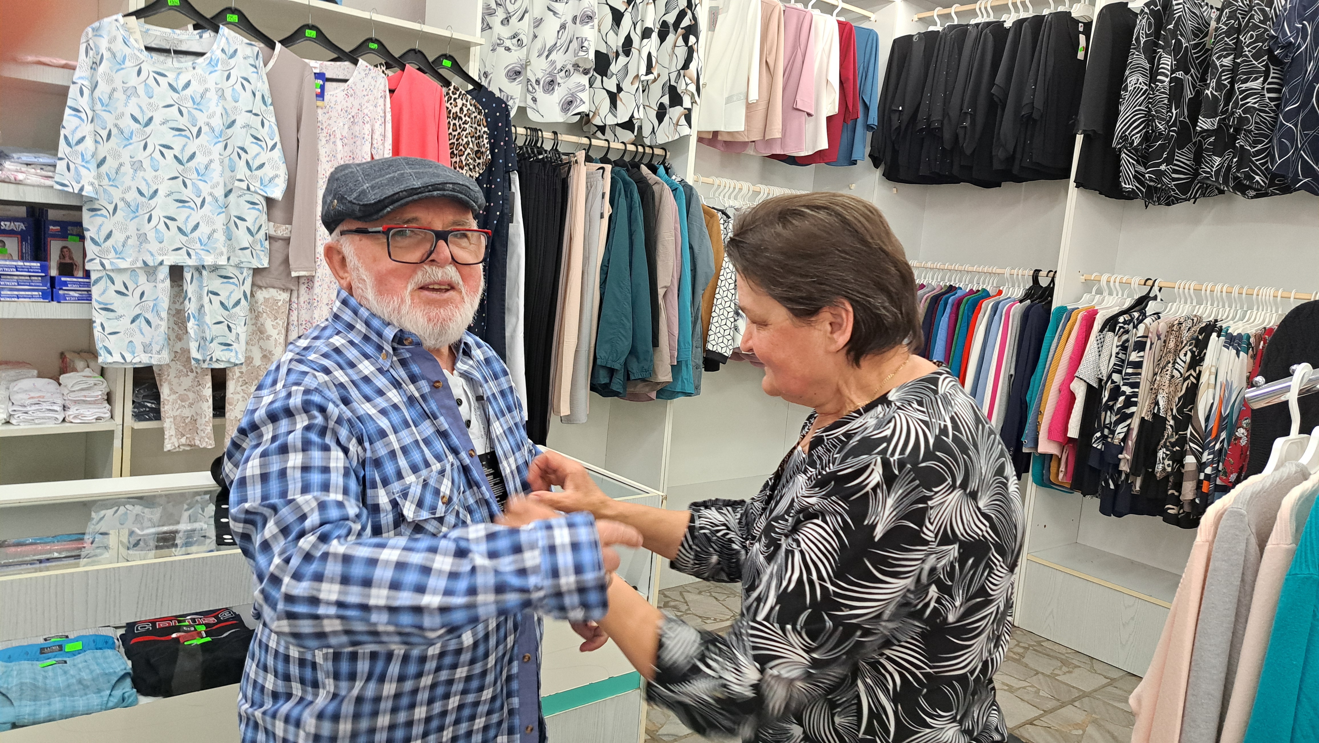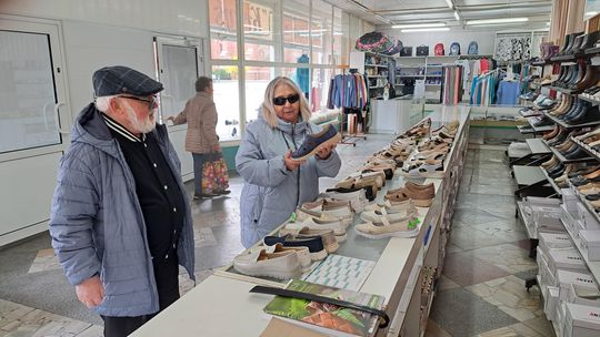 - Przychodzimy tu bardzo często na zakupy. Są tu ładne buty, bluzki. Jurek kupił dziś ładną koszulę, którą wypatrzył przed chwilą na wystawie. Wcześniej zakupił ze trzy pary kapci. Przyzwyczailiśmy się do tego sklepu. Często przechodzimy obok i oglądamy wystawę. Jak tylko jest coś ciekawego, to zaraz wchodzimy. Kupiłam tu sporo butów ze skóry w bardzo dobrej cenie. Dobrze, że takie sklepy jeszcze działają. Tu jest towar lepszej jakości, niewytwarzany w hurtowych ilościach, a ceny nie są wygórowane - mówi pani Wanda, a wtóruje jej pan Jurek.