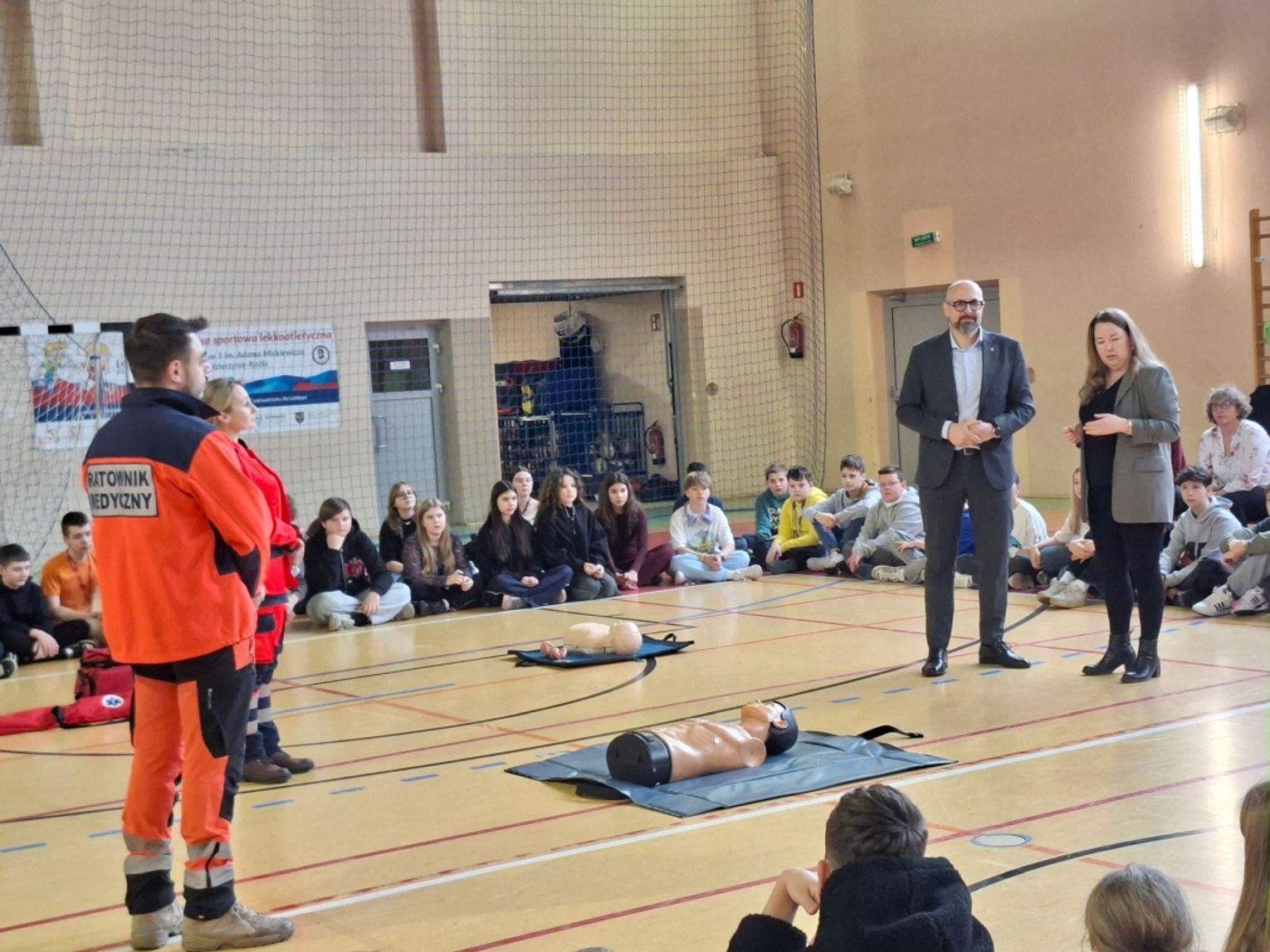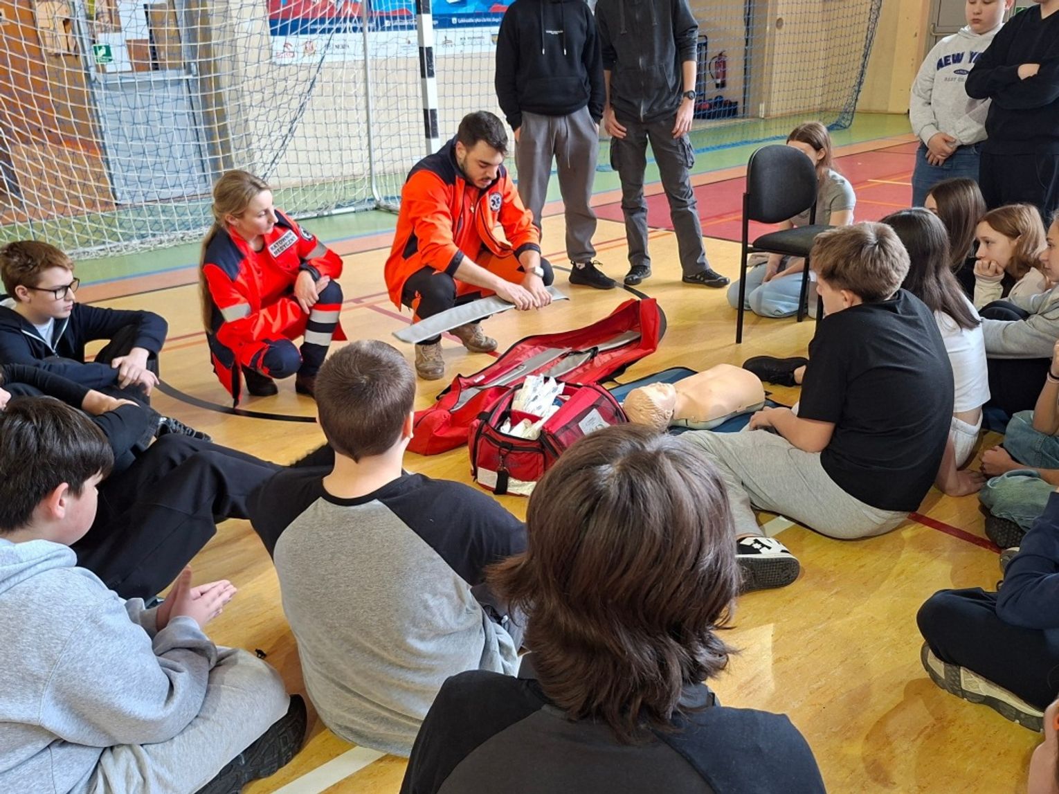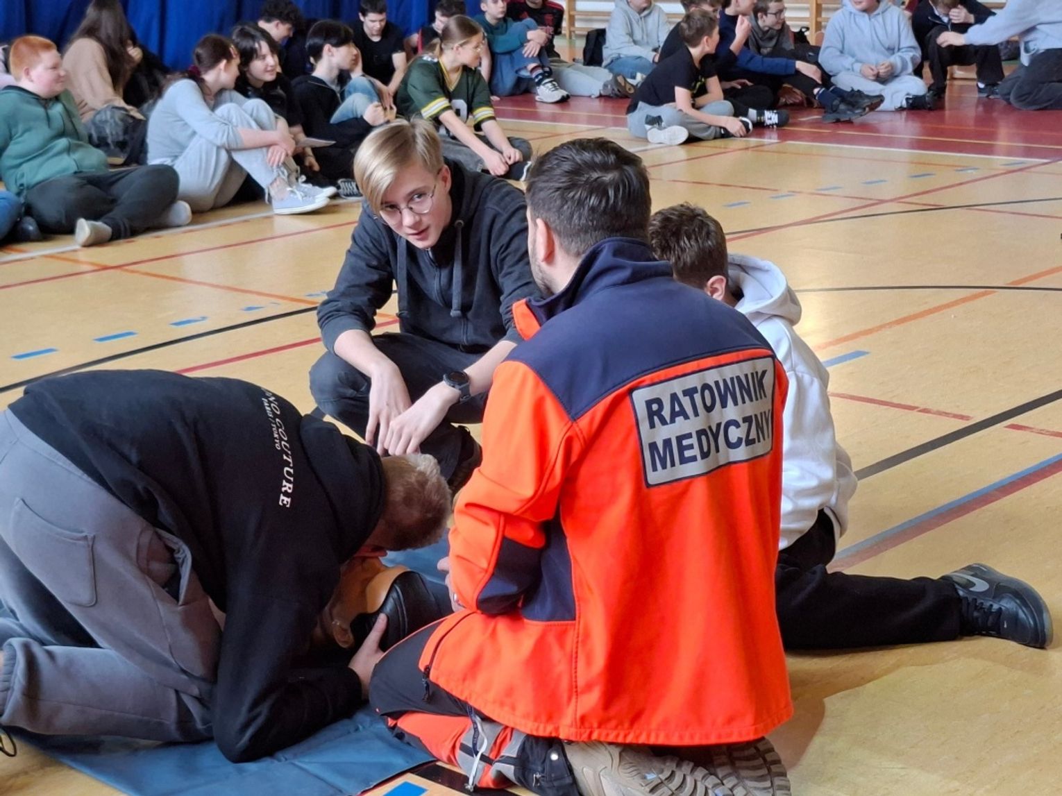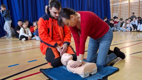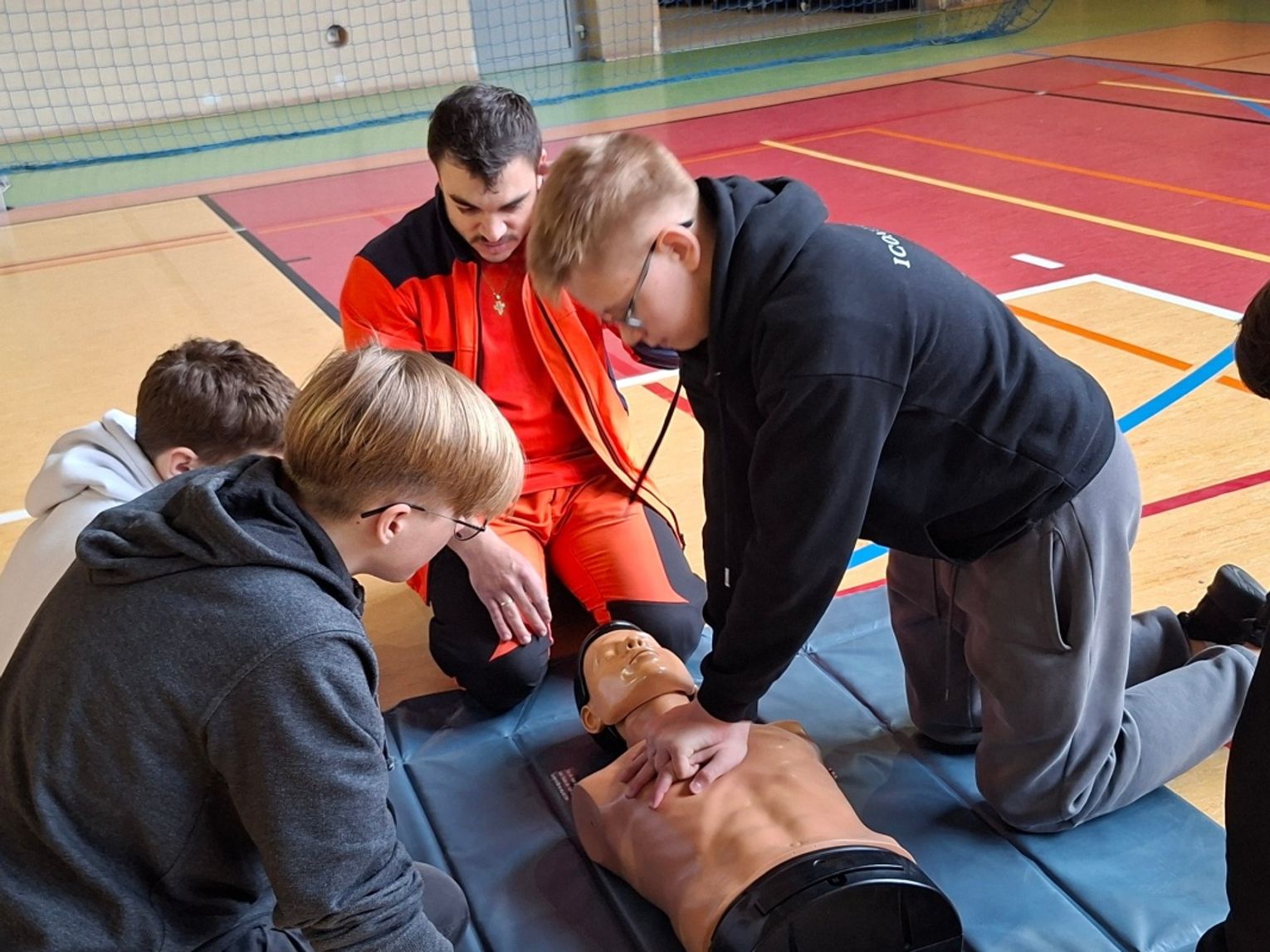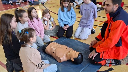 Sala gimnastyczna na kilka godzin zamieniła się w miejsce intensywnych ćwiczeń i symulacji. Dzieci i młodzież pracowali na fantomach, przechodząc przez różne scenariusze. W zajęciach uczestniczyły wszystkie klasy. Młodzi ludzie zdobyli nie tylko nowe umiejętności, ale też wiedzę, która może okazać się bezcenna. Przypomnieli sobie numery alarmowe oraz dowiedzieli się także, jak podczas udzielania pomocy zadbać o własne bezpieczeństwo.