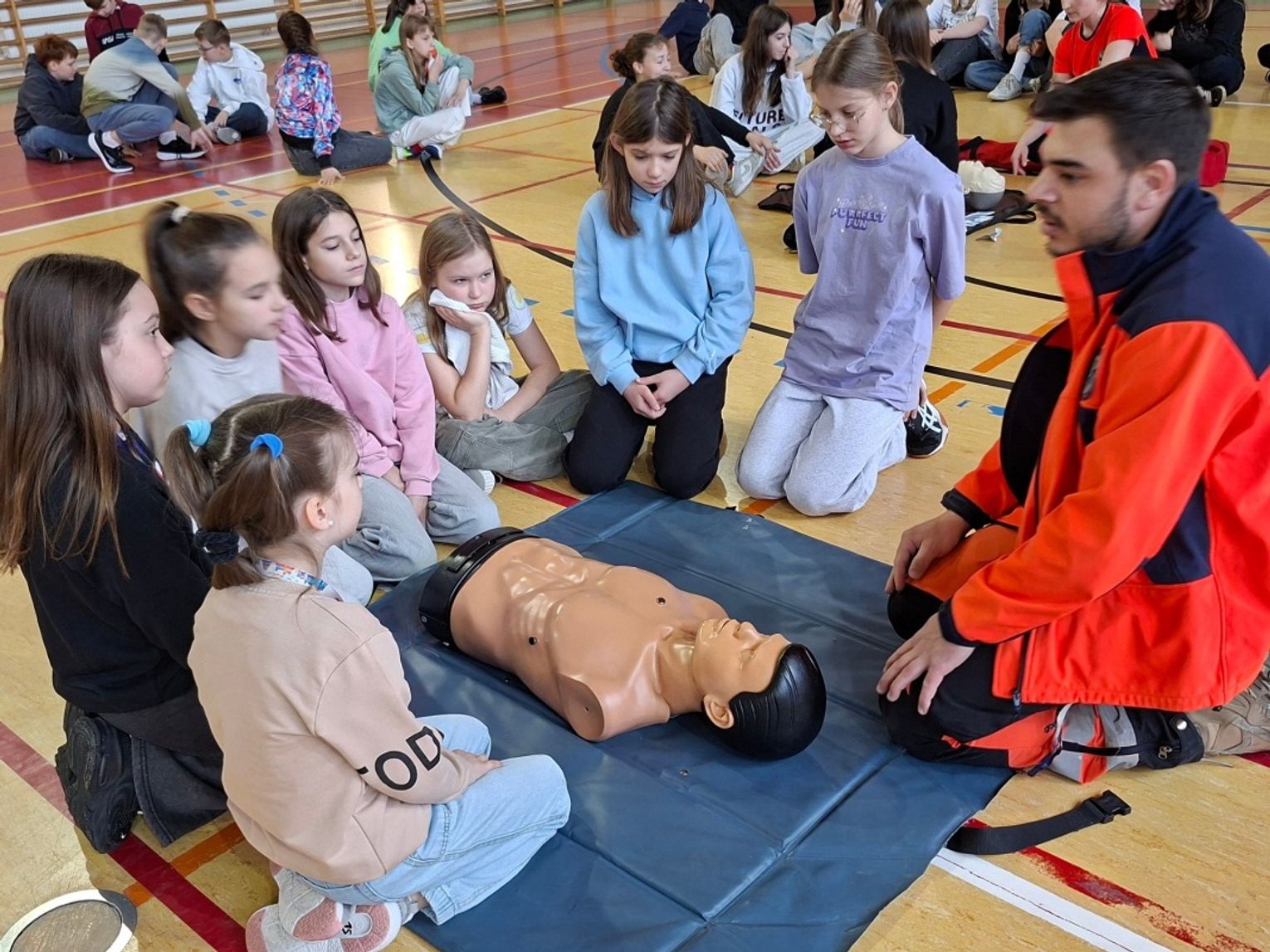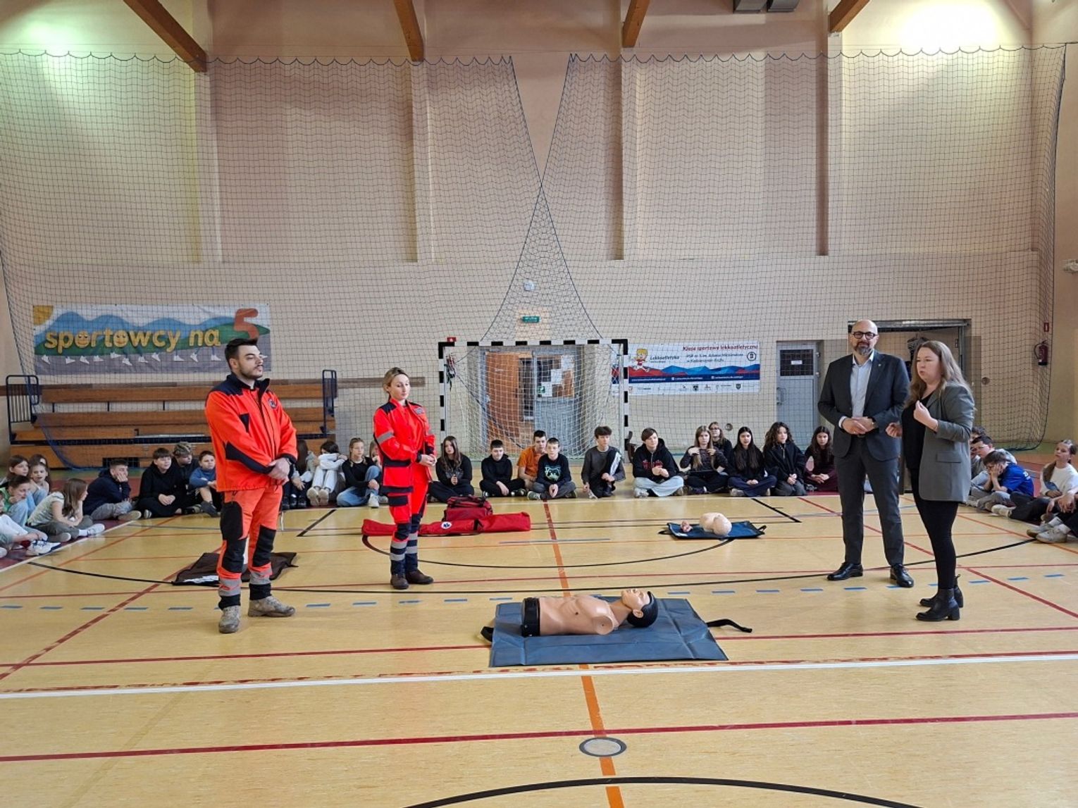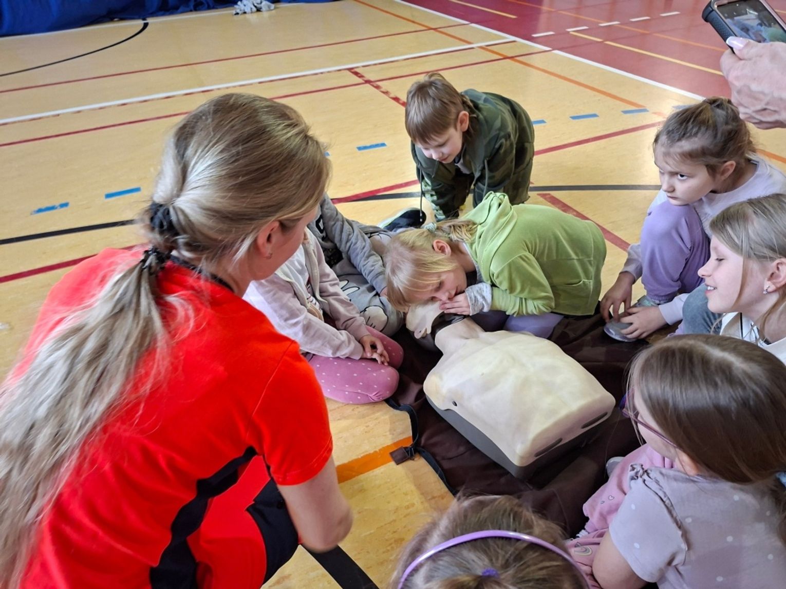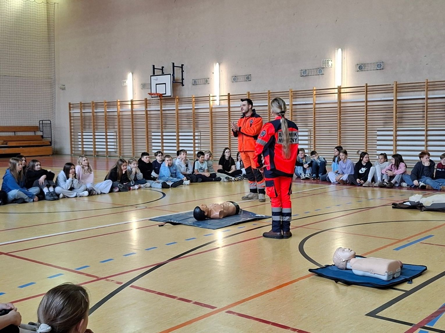 Sala gimnastyczna na kilka godzin zamieniła się w miejsce intensywnych ćwiczeń i symulacji. Dzieci i młodzież pracowali na fantomach, przechodząc przez różne scenariusze. W zajęciach uczestniczyły wszystkie klasy. Młodzi ludzie zdobyli nie tylko nowe umiejętności, ale też wiedzę, która może okazać się bezcenna. Przypomnieli sobie numery alarmowe oraz dowiedzieli się także, jak podczas udzielania pomocy zadbać o własne bezpieczeństwo.