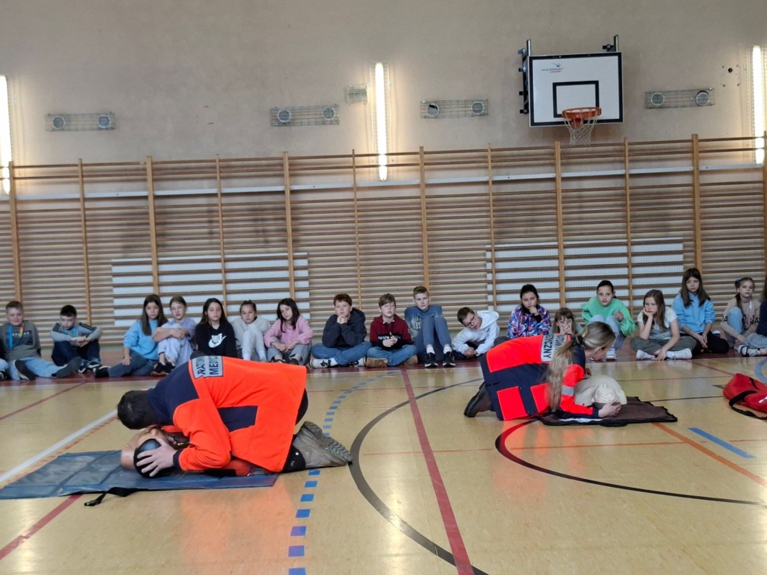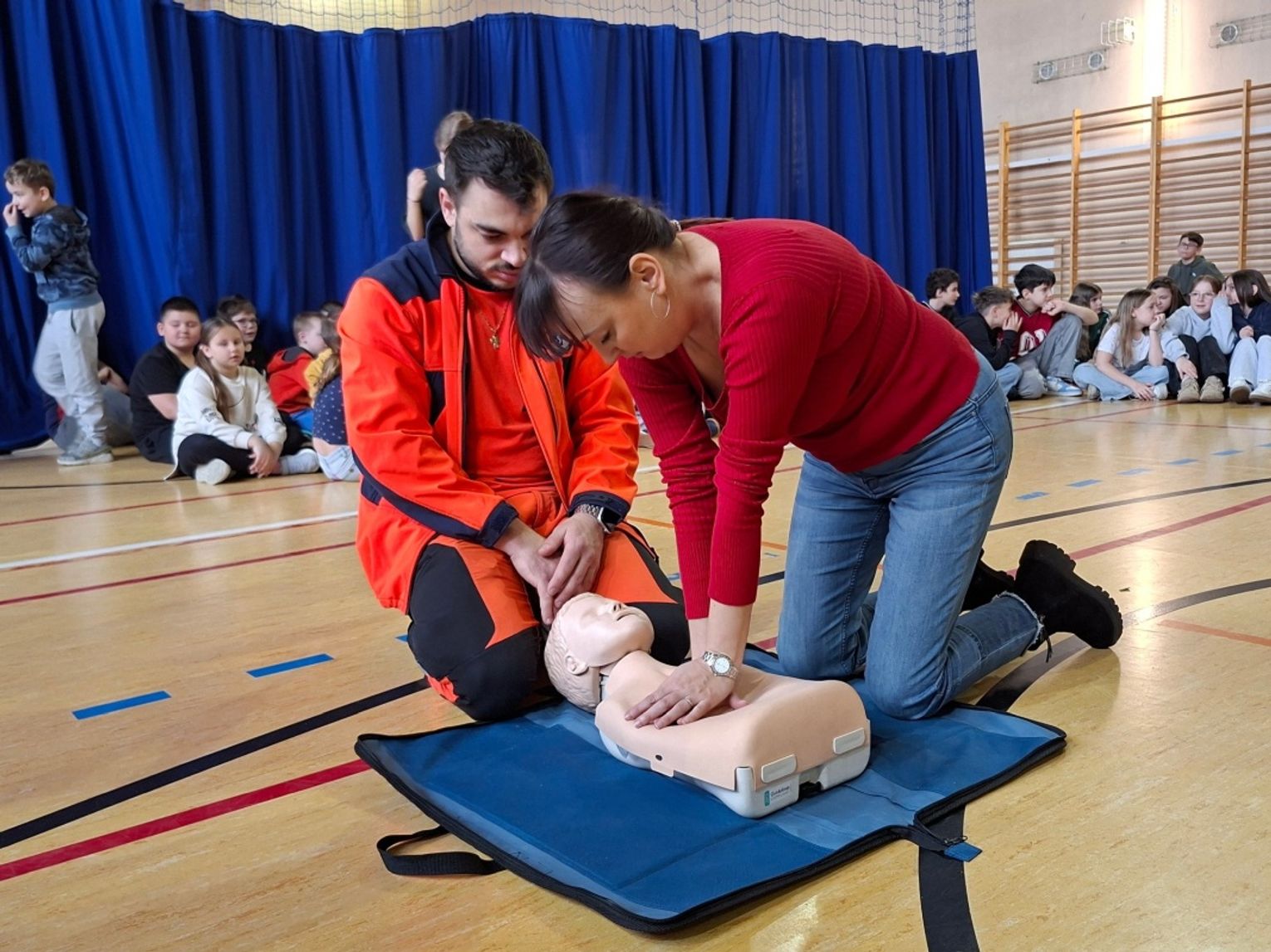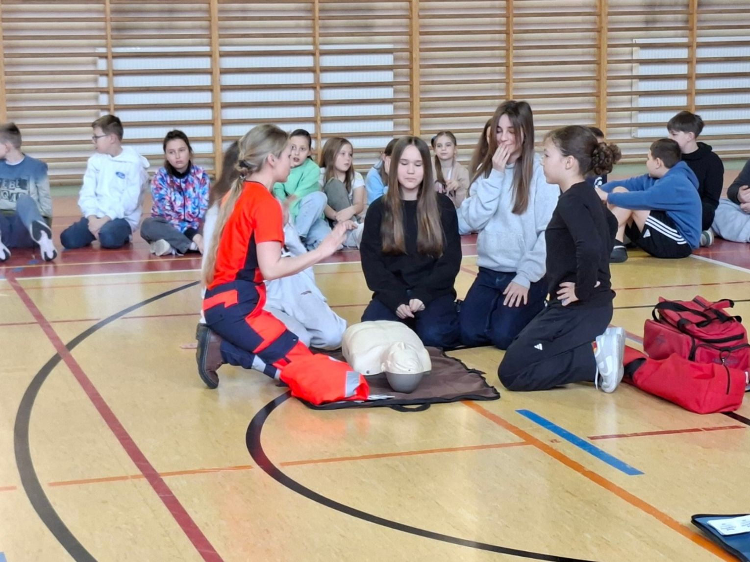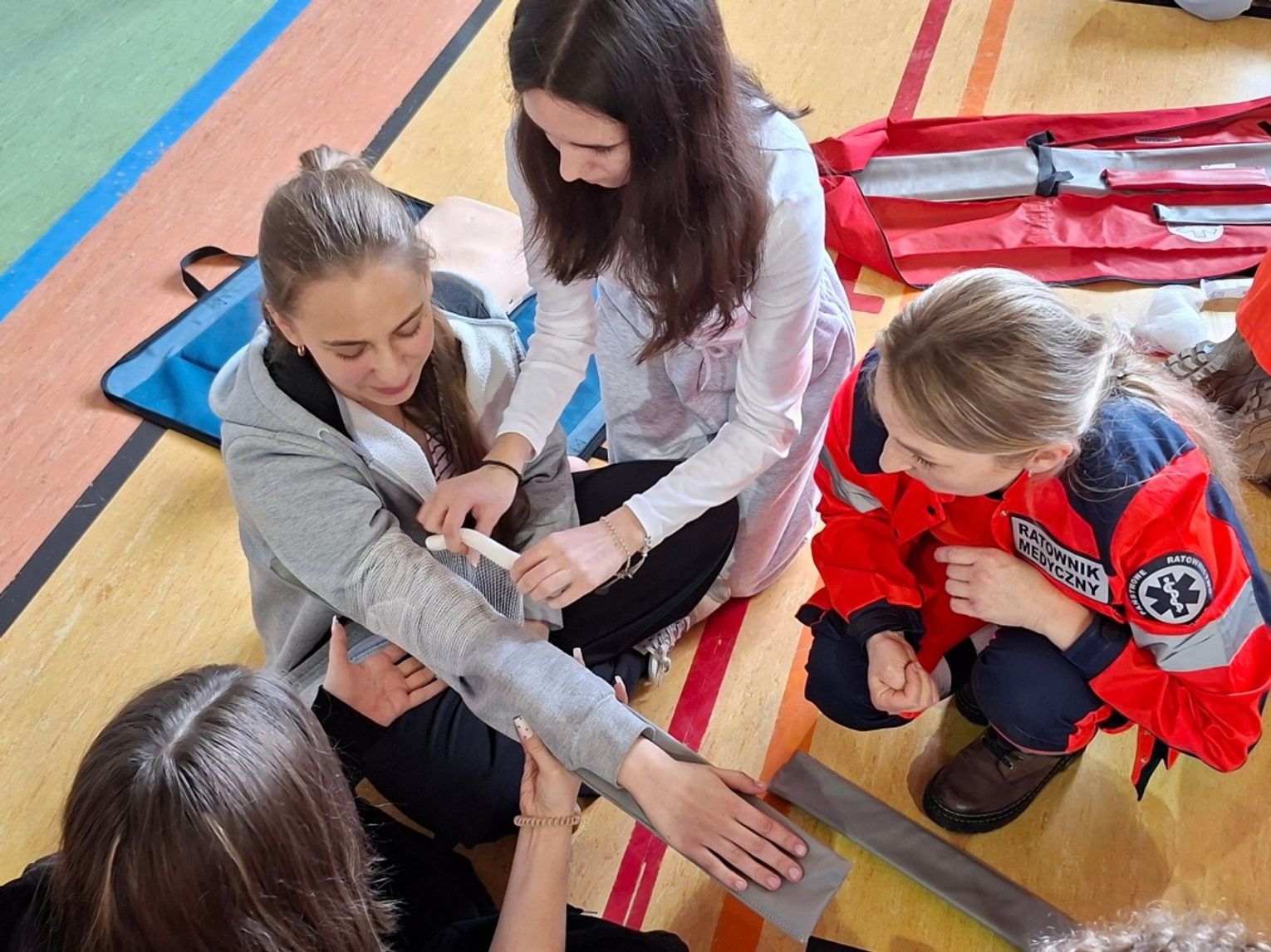 Sala gimnastyczna na kilka godzin zamieniła się w miejsce intensywnych ćwiczeń i symulacji. Dzieci i młodzież pracowali na fantomach, przechodząc przez różne scenariusze. W zajęciach uczestniczyły wszystkie klasy. Młodzi ludzie zdobyli nie tylko nowe umiejętności, ale też wiedzę, która może okazać się bezcenna. Przypomnieli sobie numery alarmowe oraz dowiedzieli się także, jak podczas udzielania pomocy zadbać o własne bezpieczeństwo.