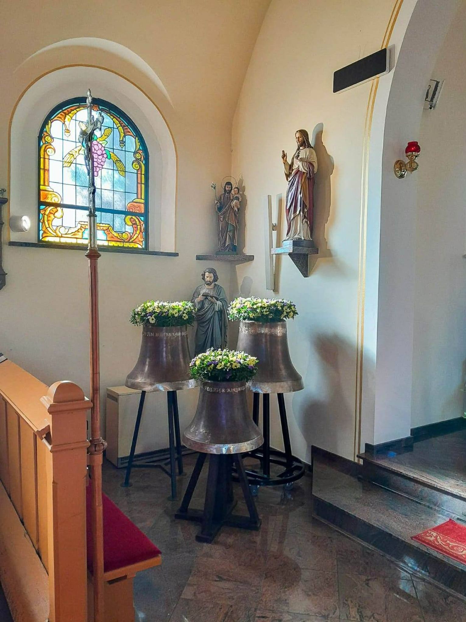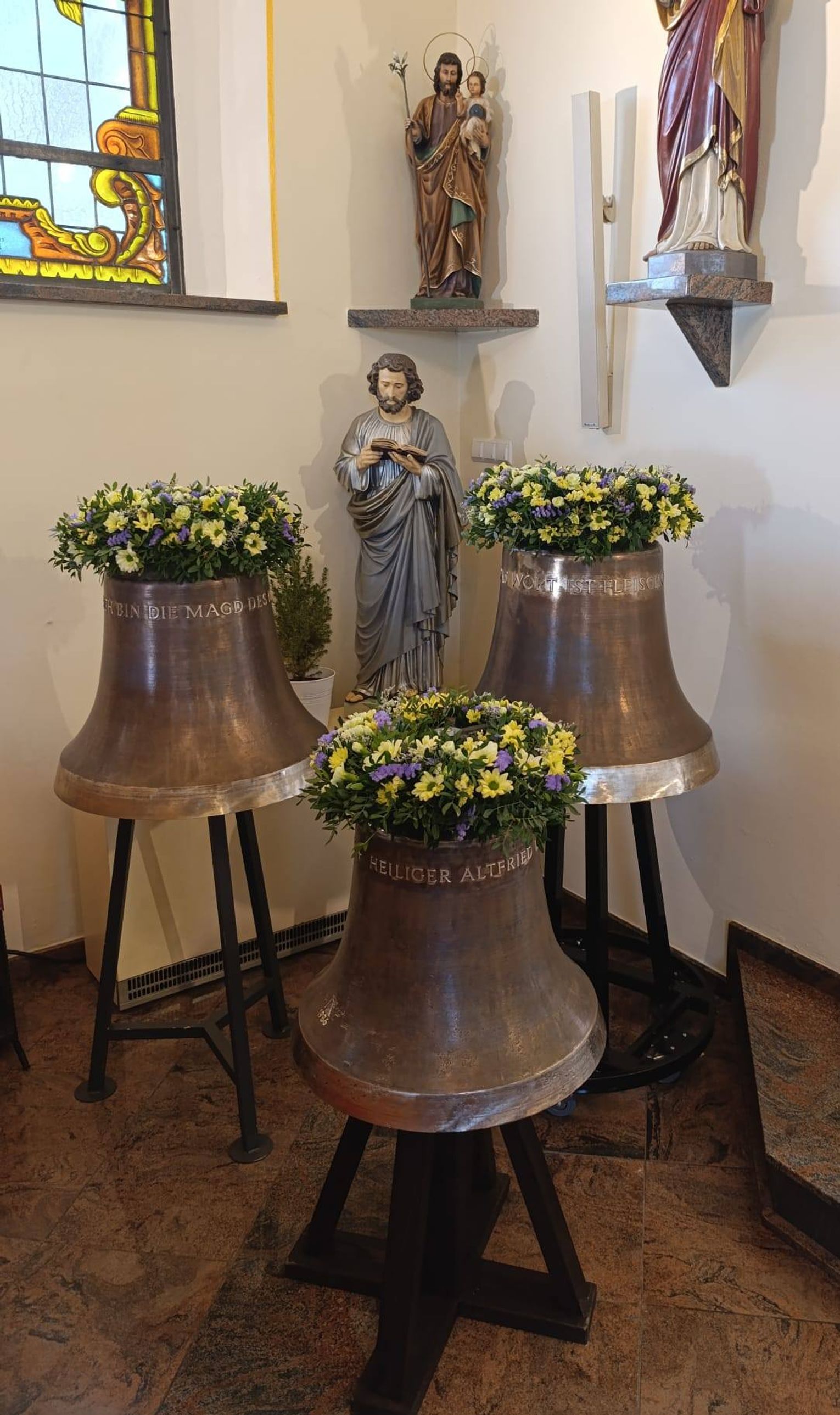 • Największy z nich waży 247 kg, ma średnicę dolną 72 cm, a jego ton uderzeniowy to d². Widnieje na nim napis: „UND DAS WORT IST FLEISCH GEWORDEN” - („Słowo Ciałem się stało”).