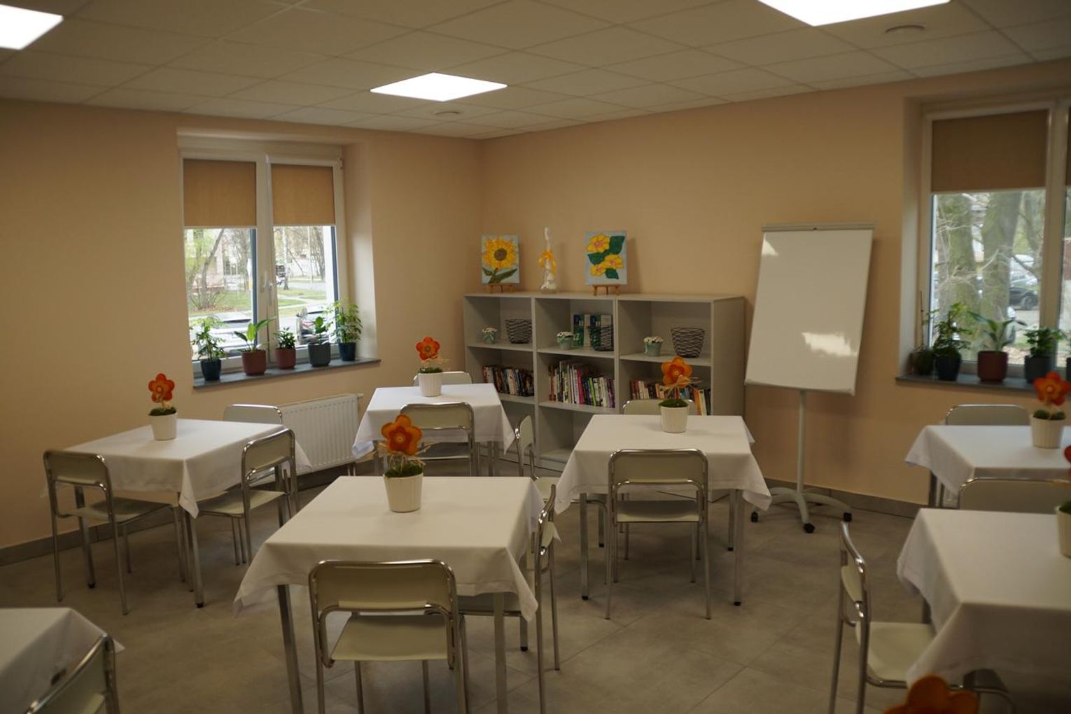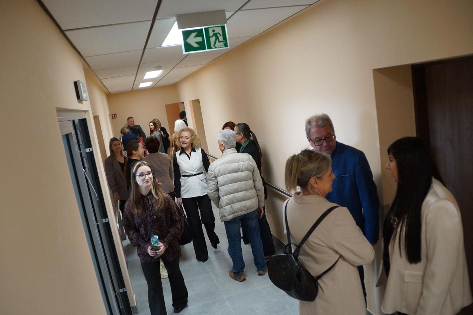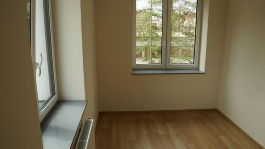 Remont rozpoczął się w lipcu 2023 roku i objął kompleksową modernizację wnętrz oraz dostosowanie obiektu do nowych funkcji. Dziś centrum oferuje szeroki wachlarz możliwości – od Domu Dziennego Pobytu „Dugnad”, przez przestrzenie dla organizacji pozarządowych, po sale warsztatowe, konferencyjne i strefę specjalistów. Ważną częścią inwestycji są mieszkania ze wsparciem – łącznie 30 lokali (28 jednoosobowych i 2 dwuosobowe). Zostały one zaprojektowane z myślą o osobach samotnych, seniorach oraz mieszkańcach z niepełnosprawnościami. Mieszkania wyposażono w podstawowy sprzęt, a łazienki dostosowano do potrzeb osób wymagających szczególnego wsparcia.