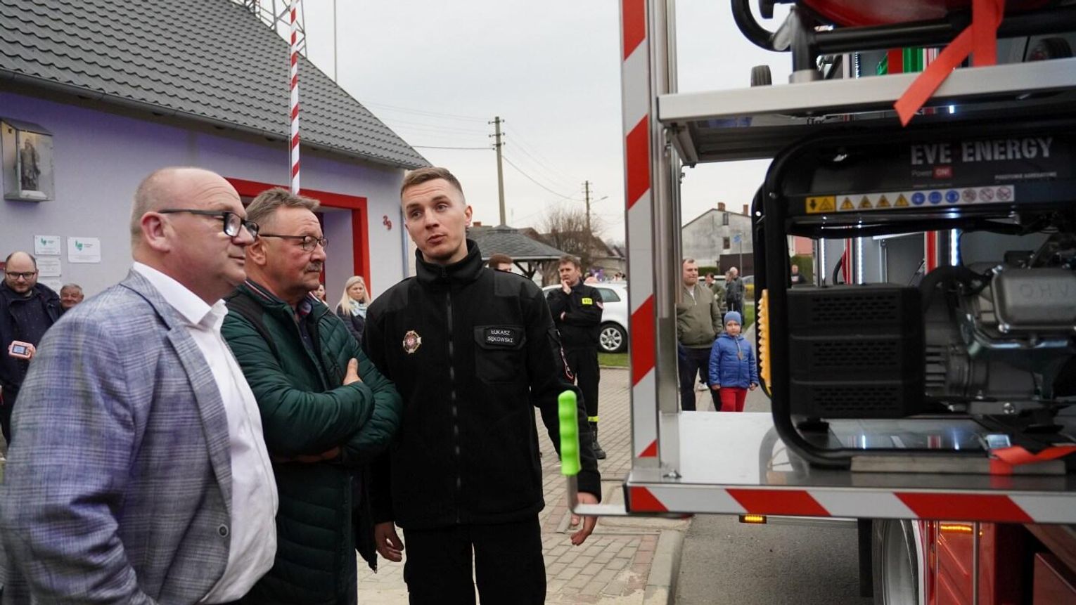 Prezes OSP Gościęcin, Łukasz Sękowski, podkreśla, że to szczególna chwila dla lokalnej społeczności. – Wielki dzień dla naszej jednostki – mówi, zaznaczając, że strażacy długo czekali na fabrycznie nowy wóz i intensywnie zabiegali o jego pozyskanie. Dodaje, że dzięki wspólnym staraniom udało się zdobyć dofinansowanie z Urzędu Marszałkowskiego w Opolu oraz środki z budżetu gminy.