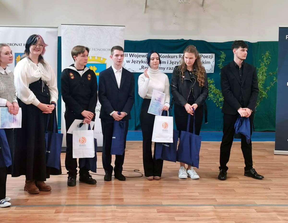 Marcin Delewicz z klasy III Ż zachwycił jury zarówno interpretacją tekstów, jak i doskonałą dykcją w obu językach.
