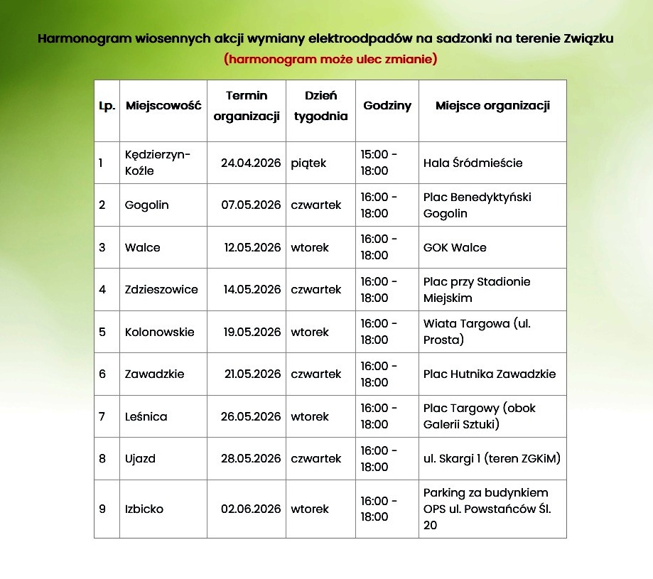 Szczegóły i godziny znajdziesz na grafice oraz na stronie www.czystyregion.pl