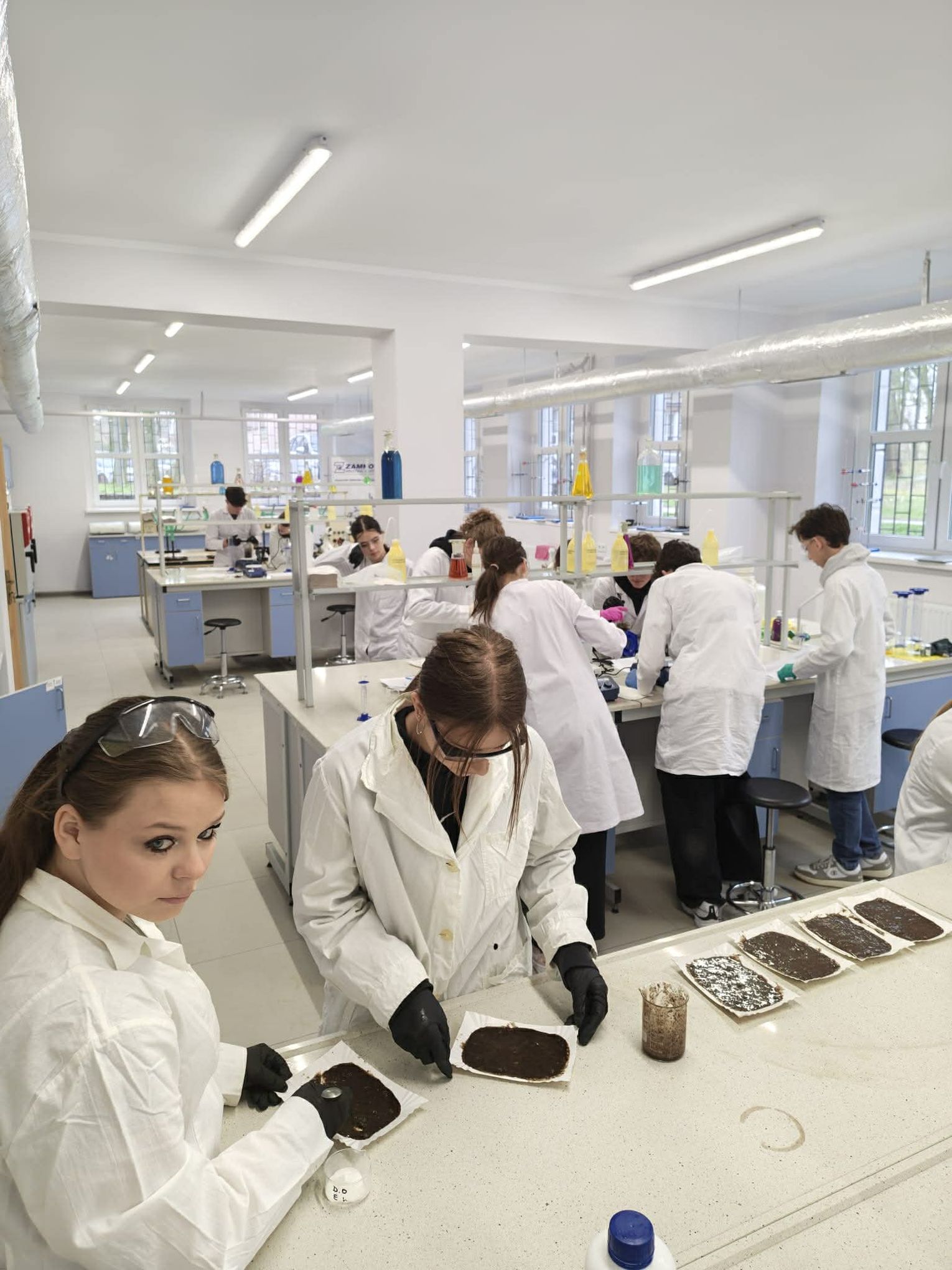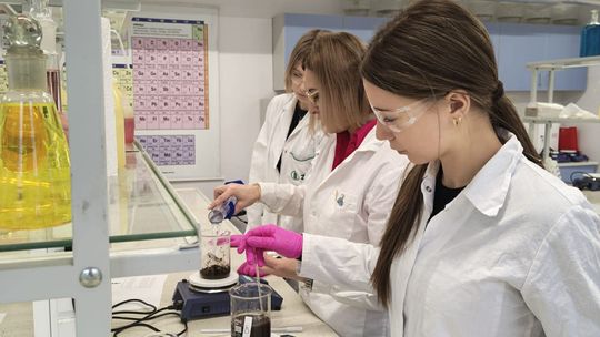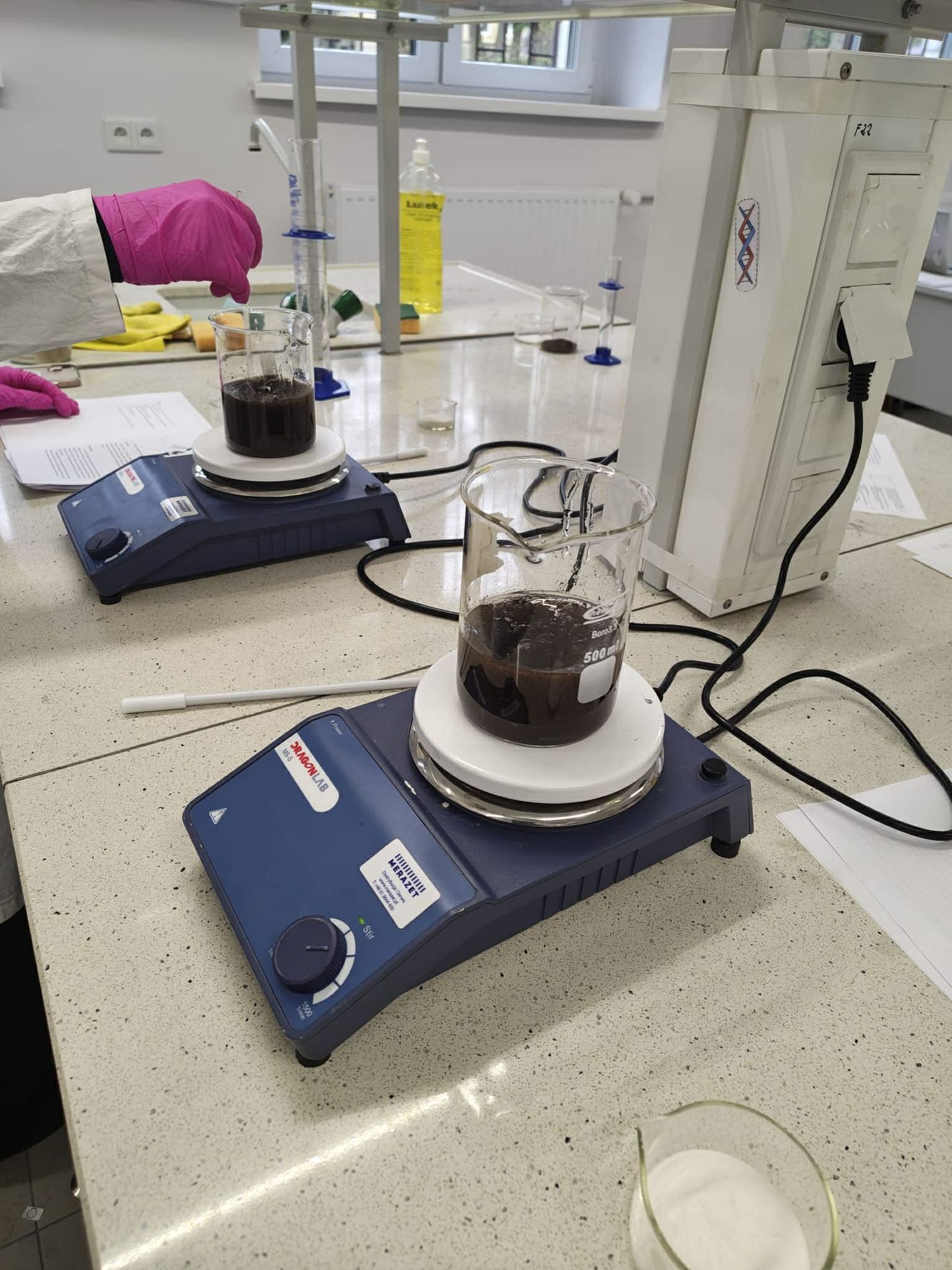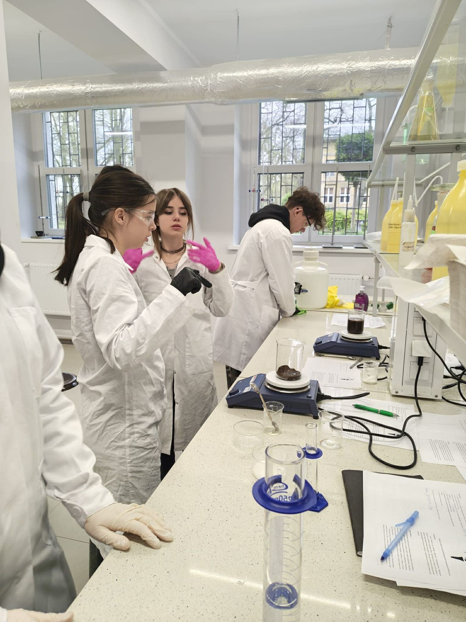 Następnie przystąpili do pracy laboratoryjnej. Podczas zajęć nie tylko wykonywali doświadczenia, ale także poznawali zasadę działania mieszadła mechanicznego.