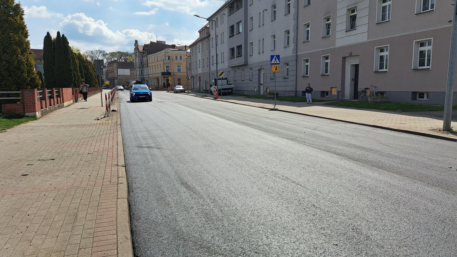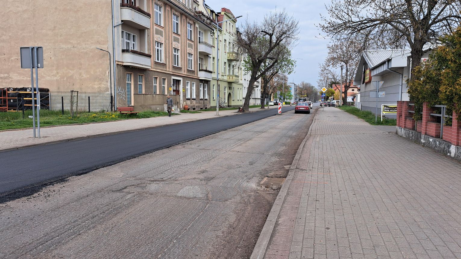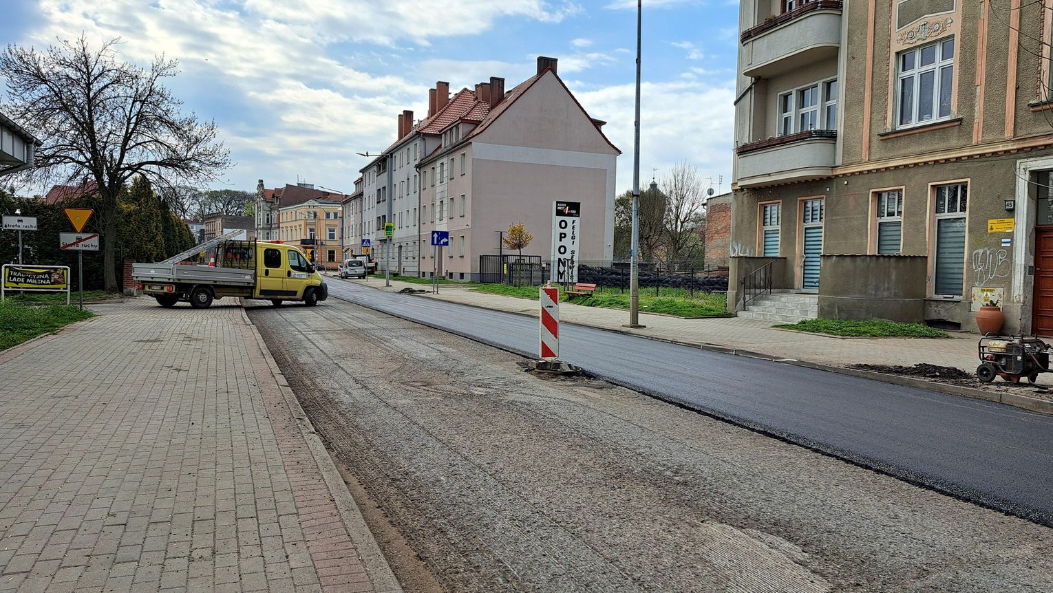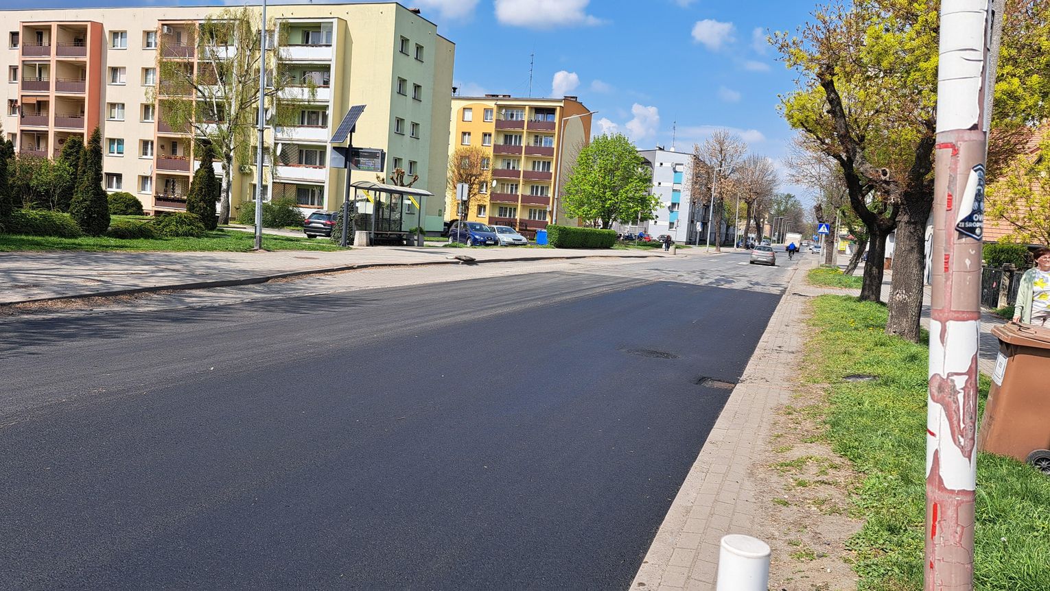 Ten fragment drogi od skrzyżowania z Chrobrego do Piastowskiej 57 liczy około 200 metrów. Zadanie wykonano w iście ekspresowym tempie. Wczoraj (16 kwietnia) został on sfrezowany, a już w piątek 17 kwietnia położono nowy dywanik asfaltowy. Oby posłużył jak najdłużej.