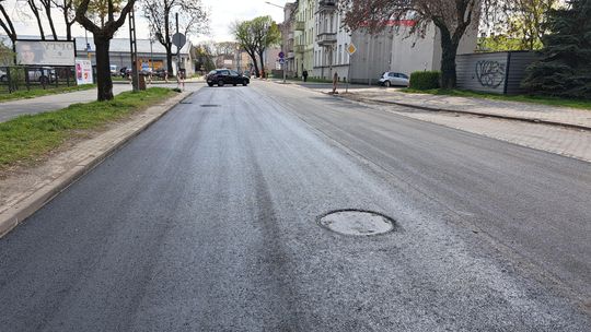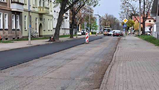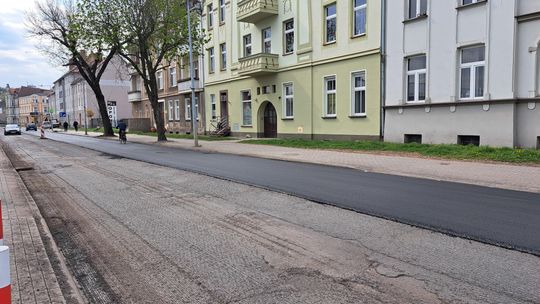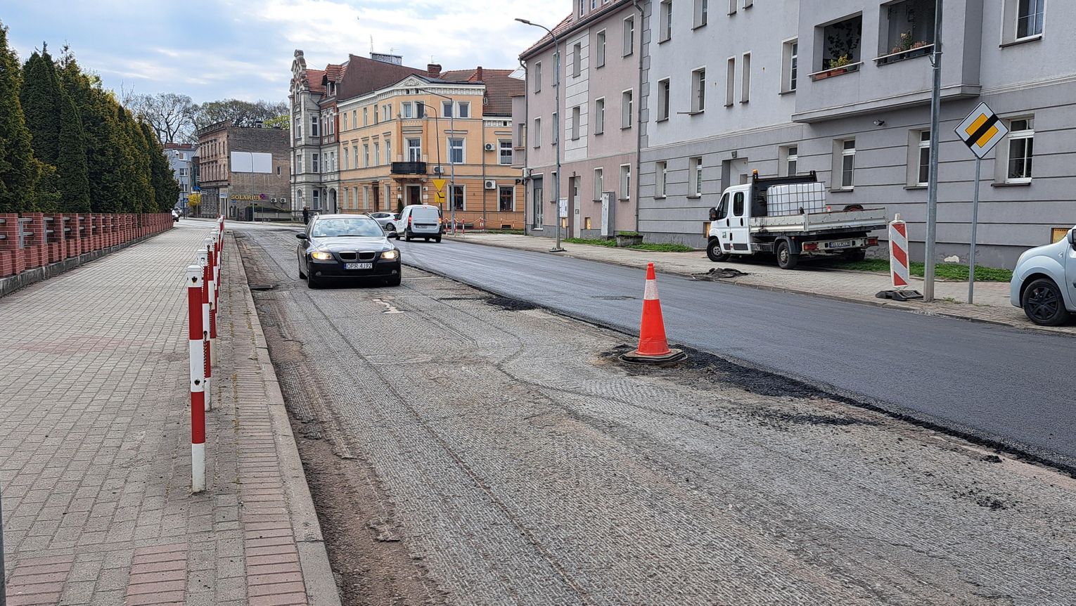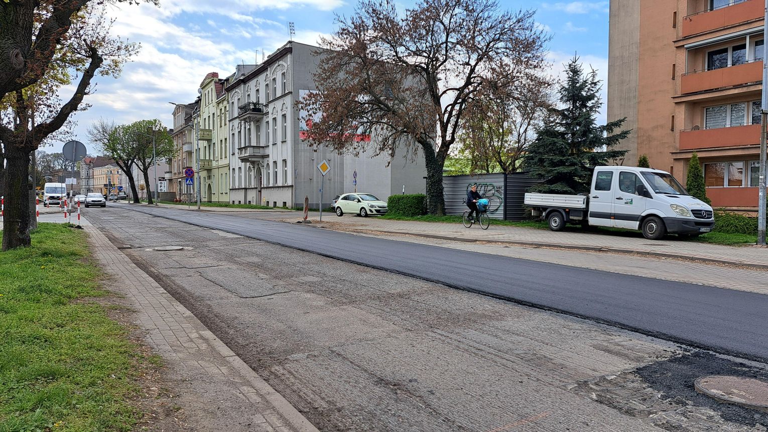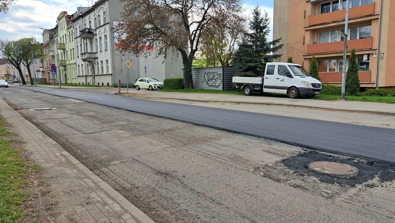 Ten fragment drogi od skrzyżowania z Chrobrego do Piastowskiej 57 liczy około 200 metrów. Zadanie wykonano w iście ekspresowym tempie. Wczoraj (16 kwietnia) został on sfrezowany, a już w piątek 17 kwietnia położono nowy dywanik asfaltowy. Oby posłużył jak najdłużej.