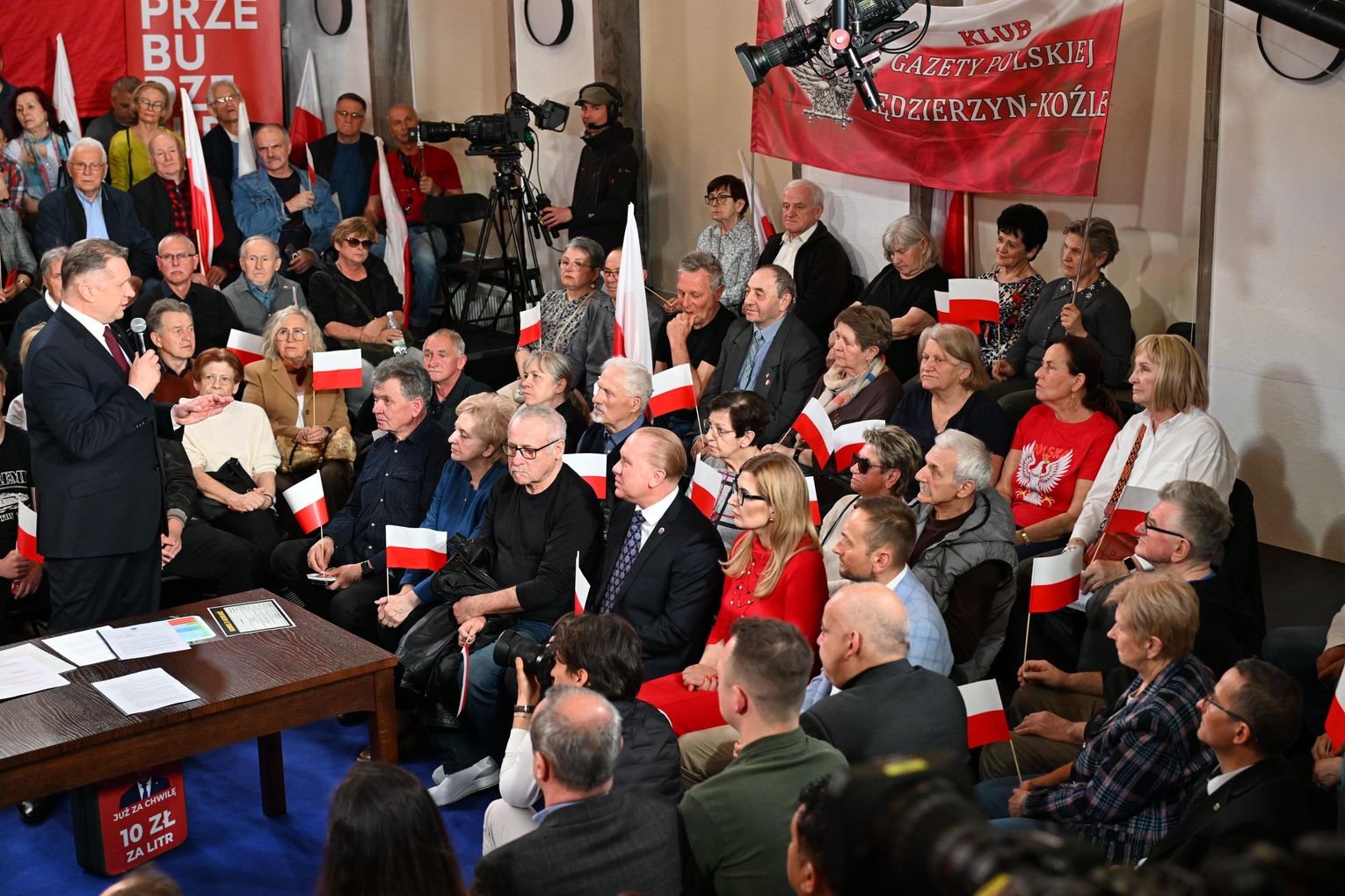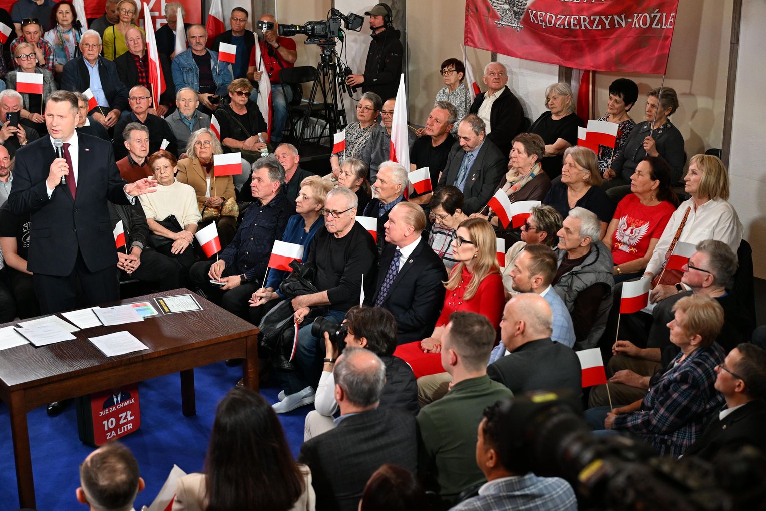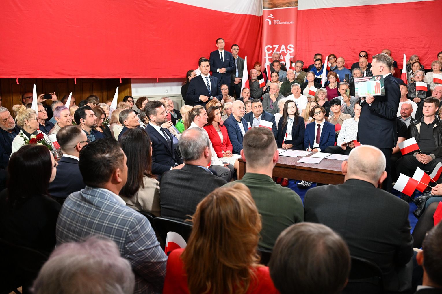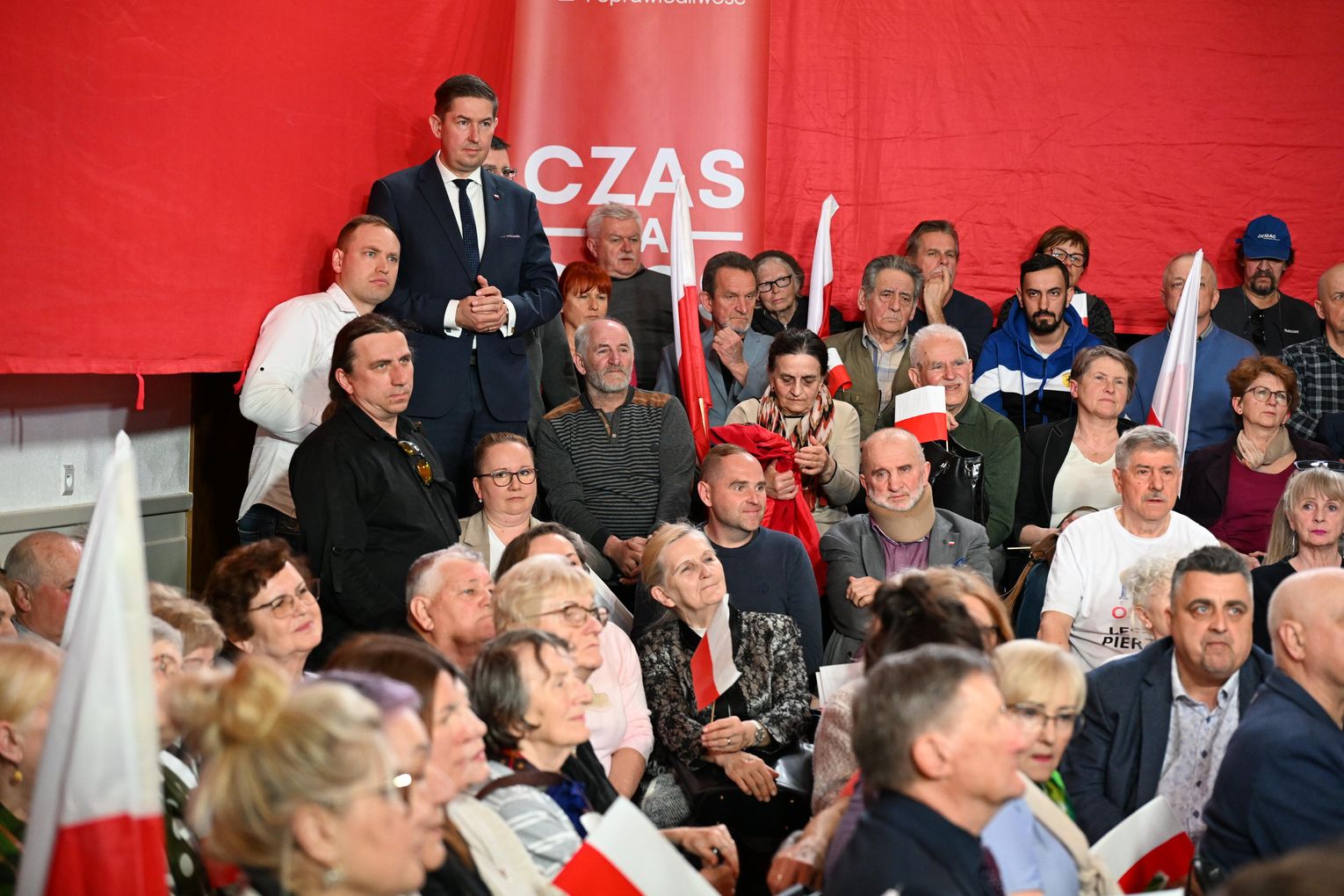 Polityk został przywitany przez zgromadzonych uczestników okrzykami i brawami. Już na początku wystąpienia nawiązał do lokalnych tematów, w tym do siatkarskich sukcesów ZAKSY i sytuacji Grupy Azoty.