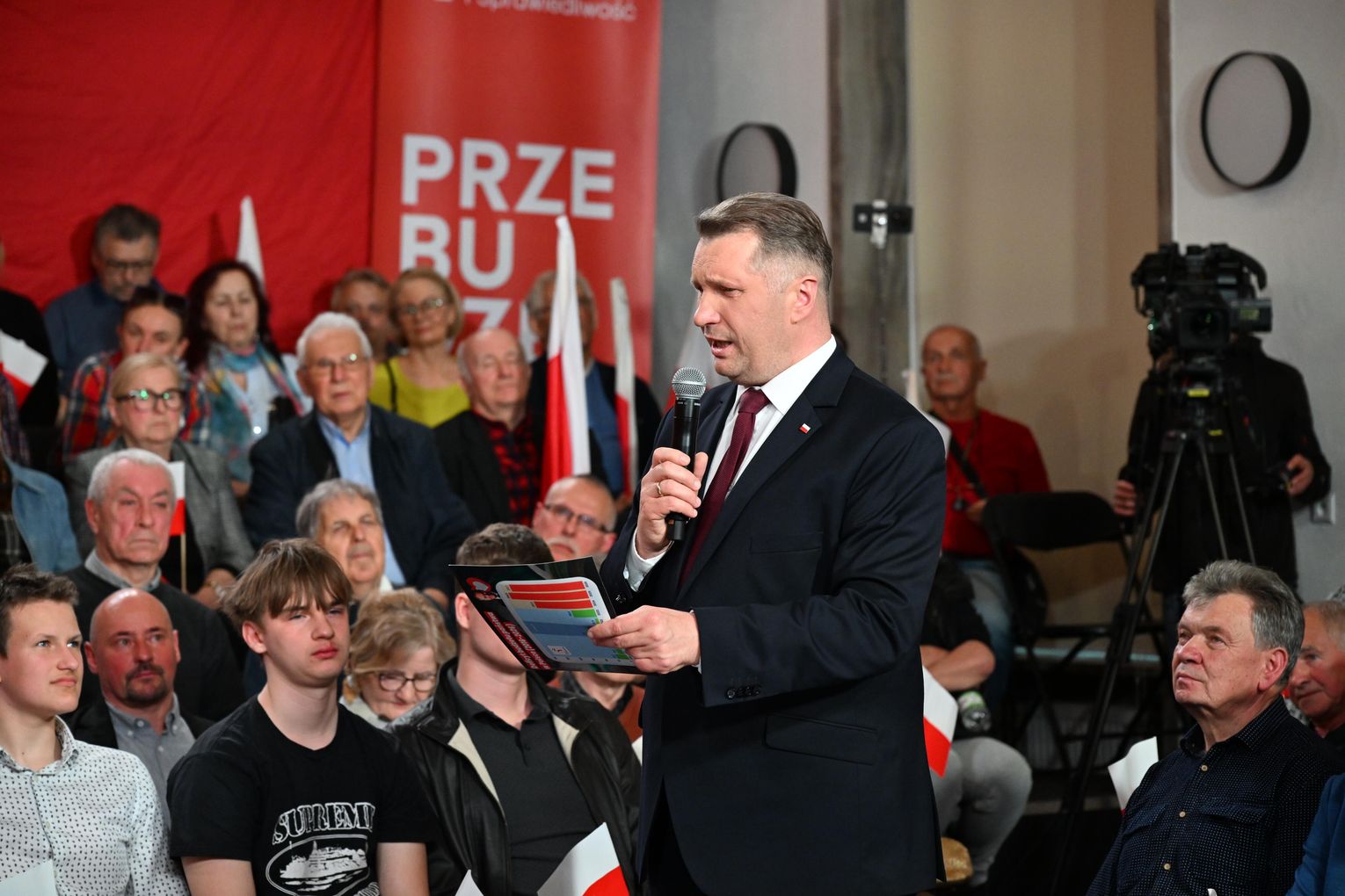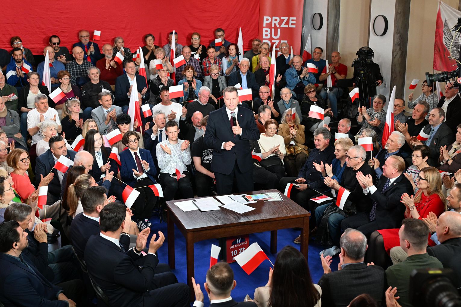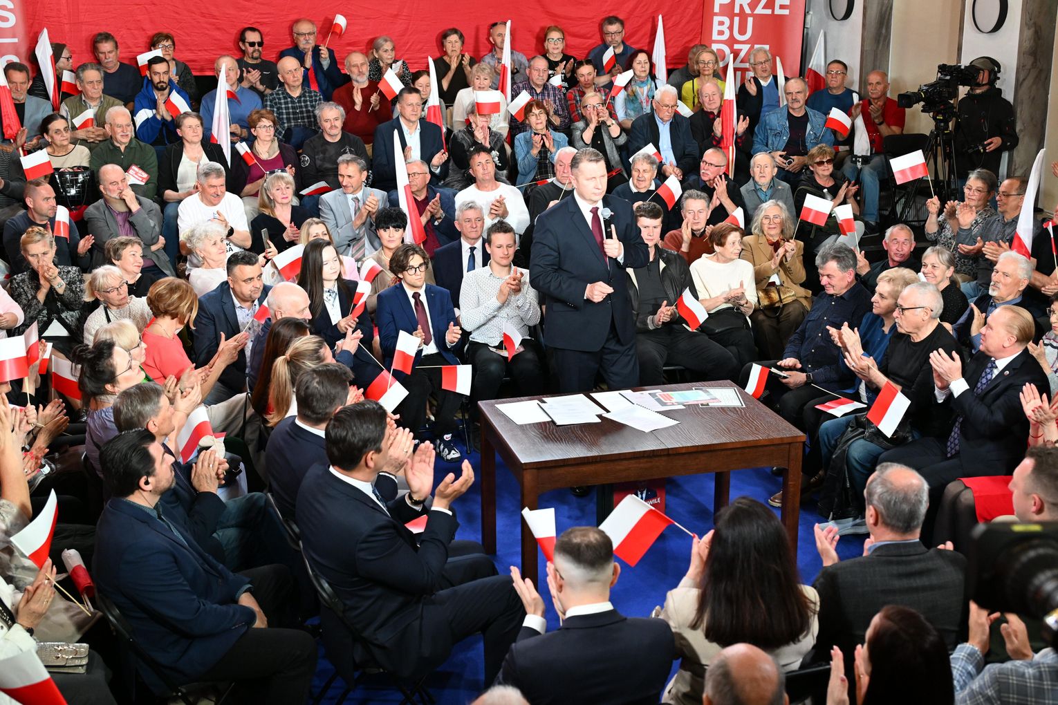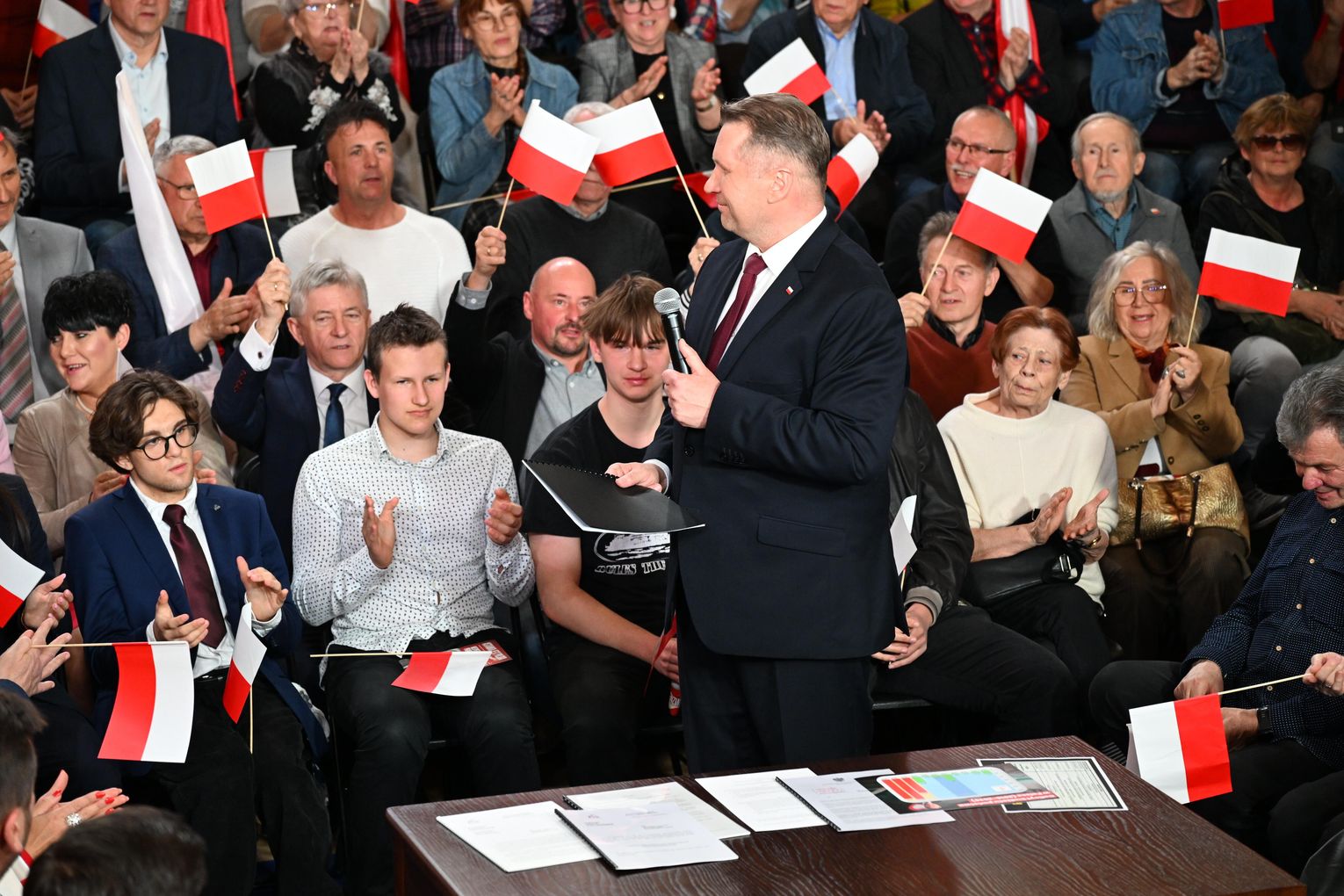 Polityk został przywitany przez zgromadzonych uczestników okrzykami i brawami. Już na początku wystąpienia nawiązał do lokalnych tematów, w tym do siatkarskich sukcesów ZAKSY i sytuacji Grupy Azoty.