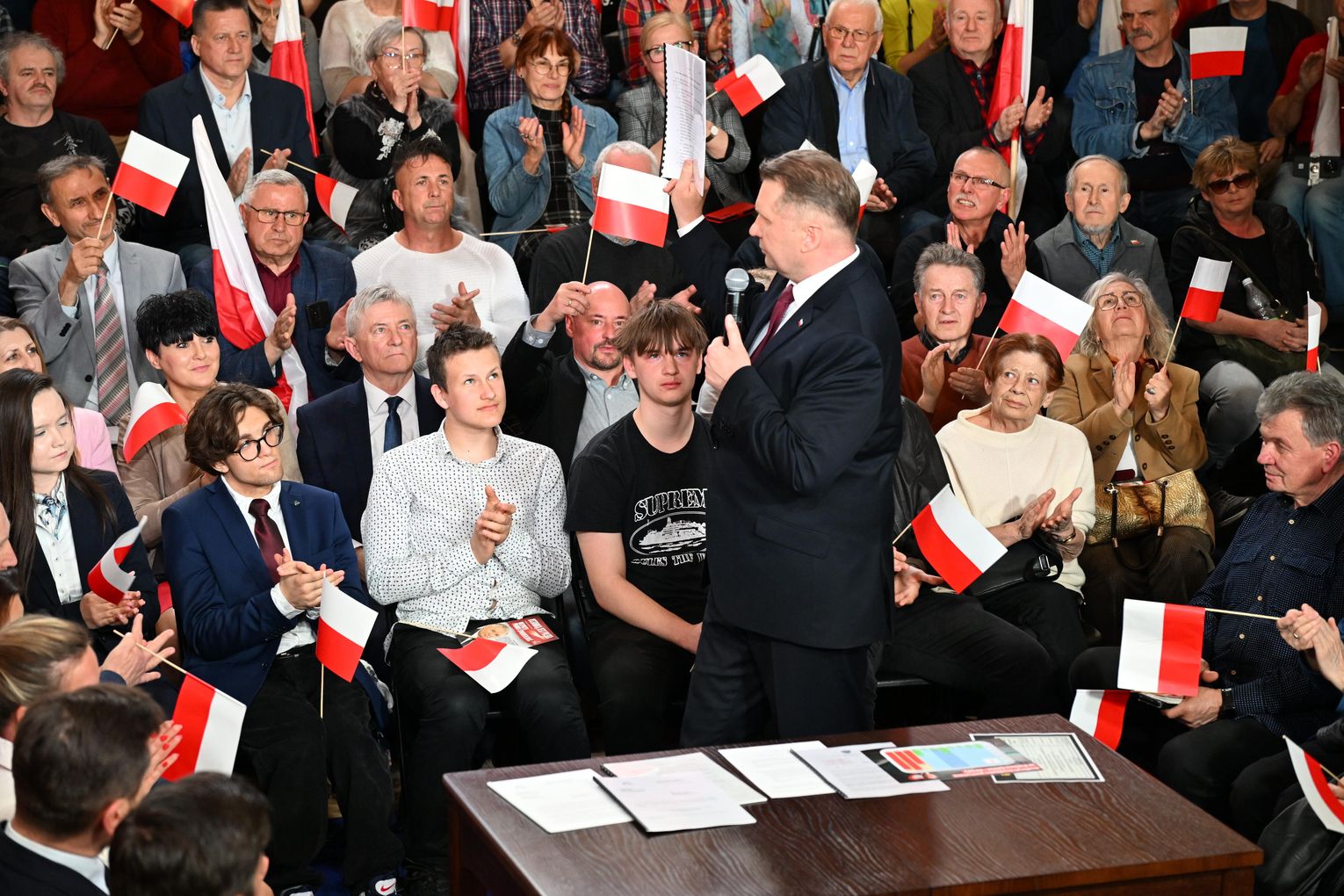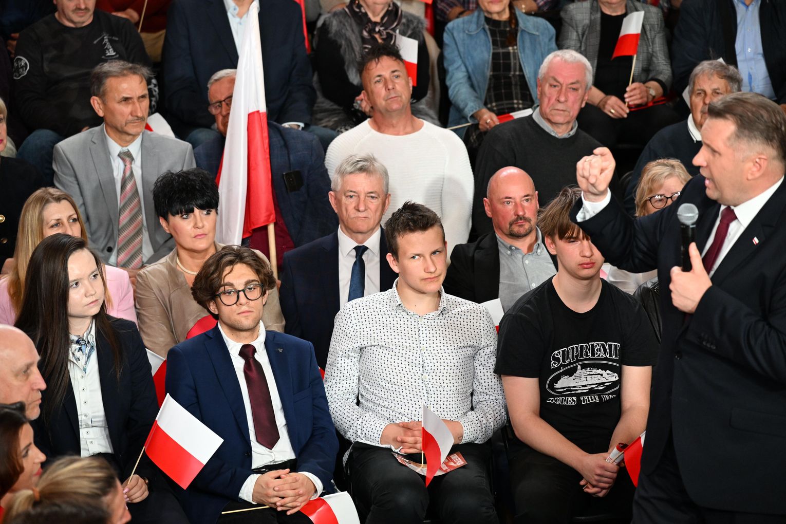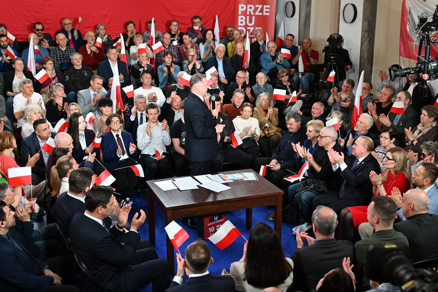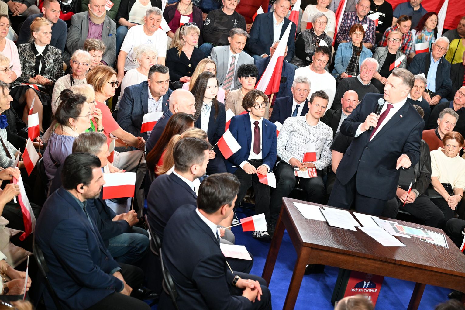 Polityk został przywitany przez zgromadzonych uczestników okrzykami i brawami. Już na początku wystąpienia nawiązał do lokalnych tematów, w tym do siatkarskich sukcesów ZAKSY i sytuacji Grupy Azoty.