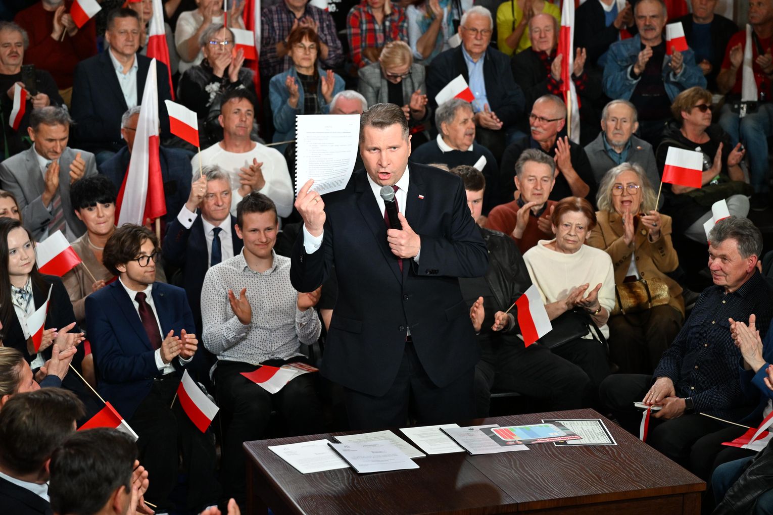 Duża część wystąpienia była poświęcona ostrej krytyce obecnego rządu. Czarnek przekonywał, że przez ostatnie ponad dwa lata Polska pogrążyła się w chaosie, manipulacji i kryzysie zaufania.