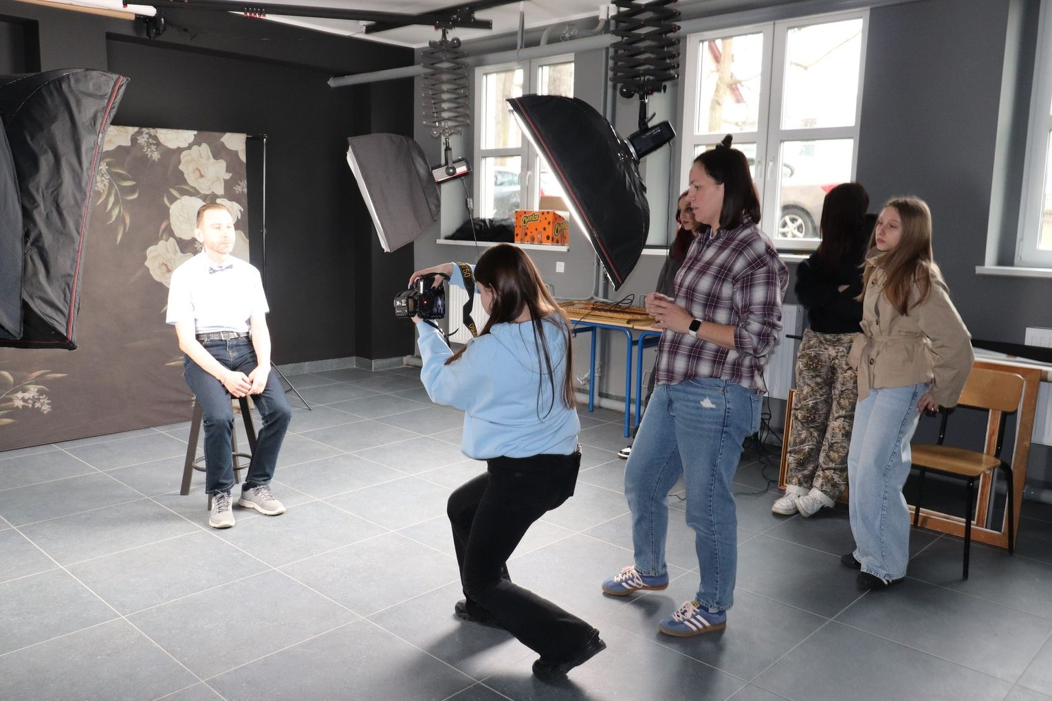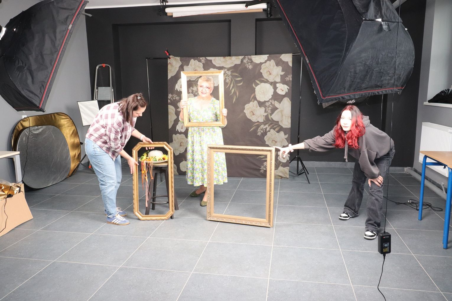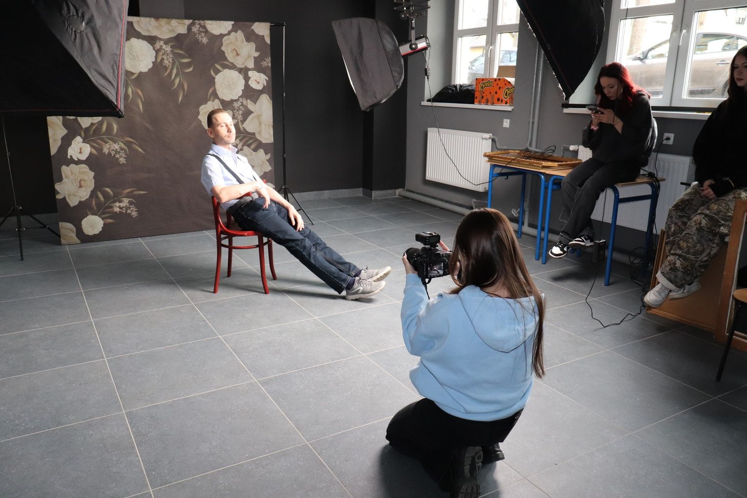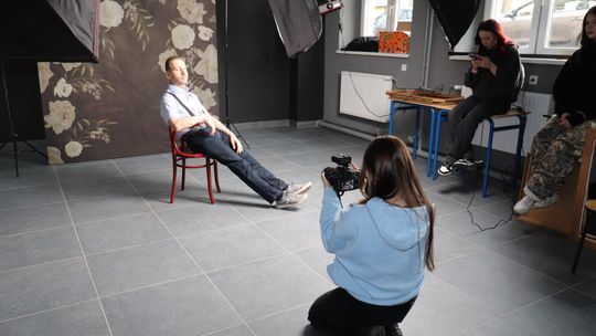 To jednak nie był koniec niespodzianek! W ramach prezentu jubilaci zostali wcześniej zaproszeni na profesjonalną sesję fotograficzną do Zespołu Szkół nr 3 w Sławięcicach. Tam, pod czujnym okiem uczniów oraz Pani Marty Głabuś-Kupki, powstawały piękne zdjęcia. Seniorzy bawili się przy tym doskonale!