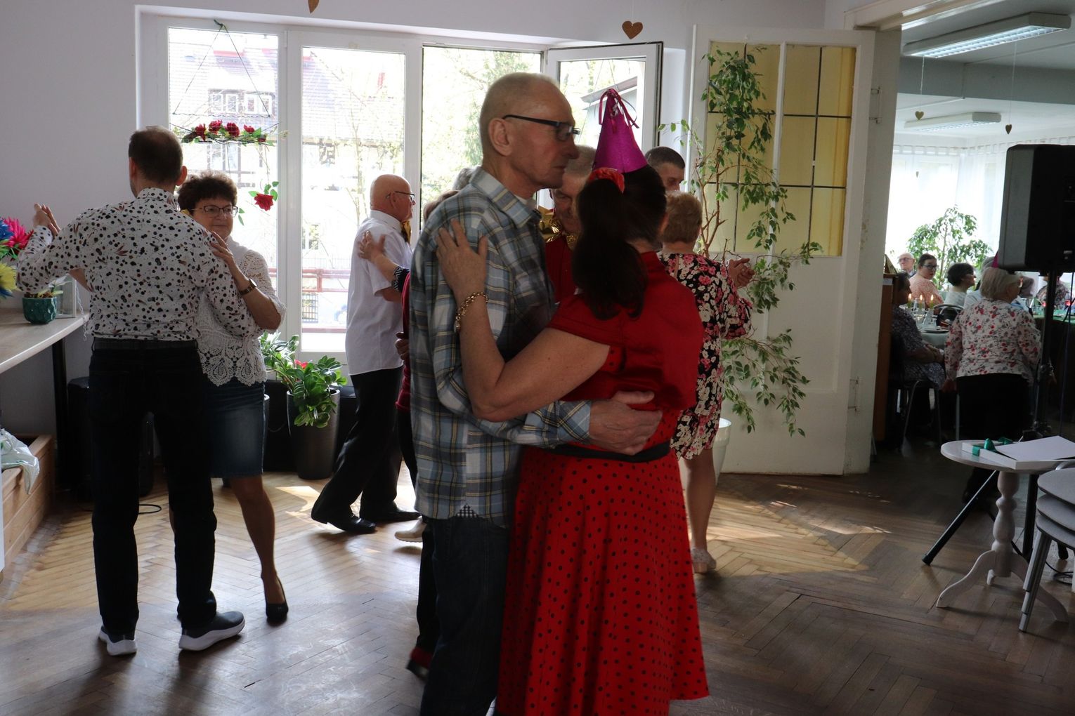 Na uczestników czekała wspaniała atmosfera – były tańce, muzyka, rozmowy, a także pyszny poczęstunek. Wszyscy bawili się znakomicie, tworząc wyjątkową, rodzinną aurę tego spotkania.
