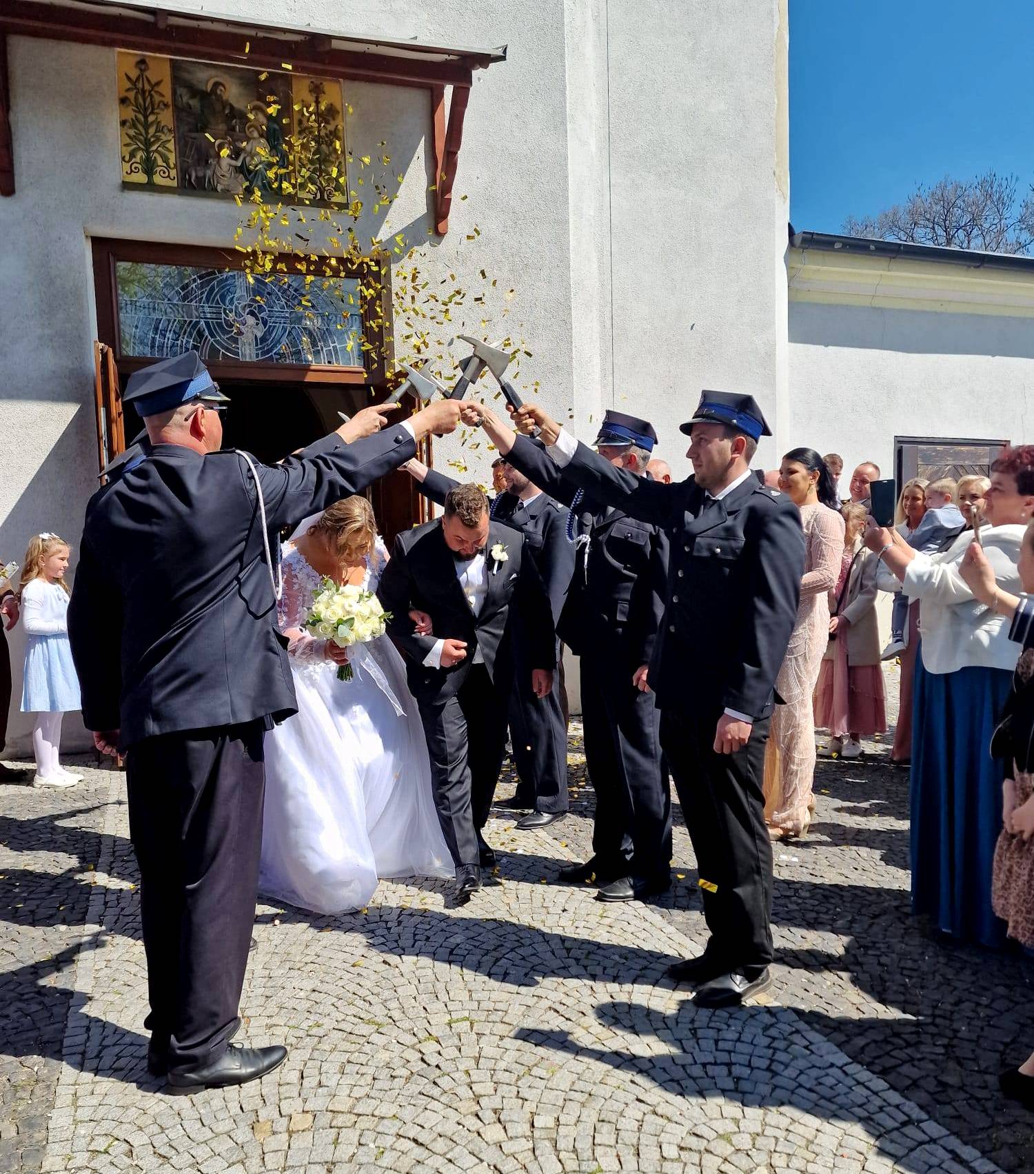 Z tej okazji nasi druhowie mieli zaszczyt stworzyć uroczysty szpaler oraz pojawić się jako delegacja, by wspólnie uczcić ten wyjątkowy dzień. Danielu i Kasandro życzymy Wam dużo miłości,