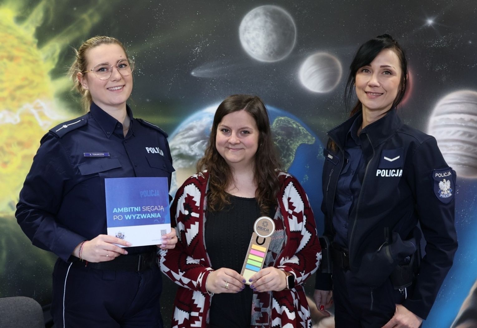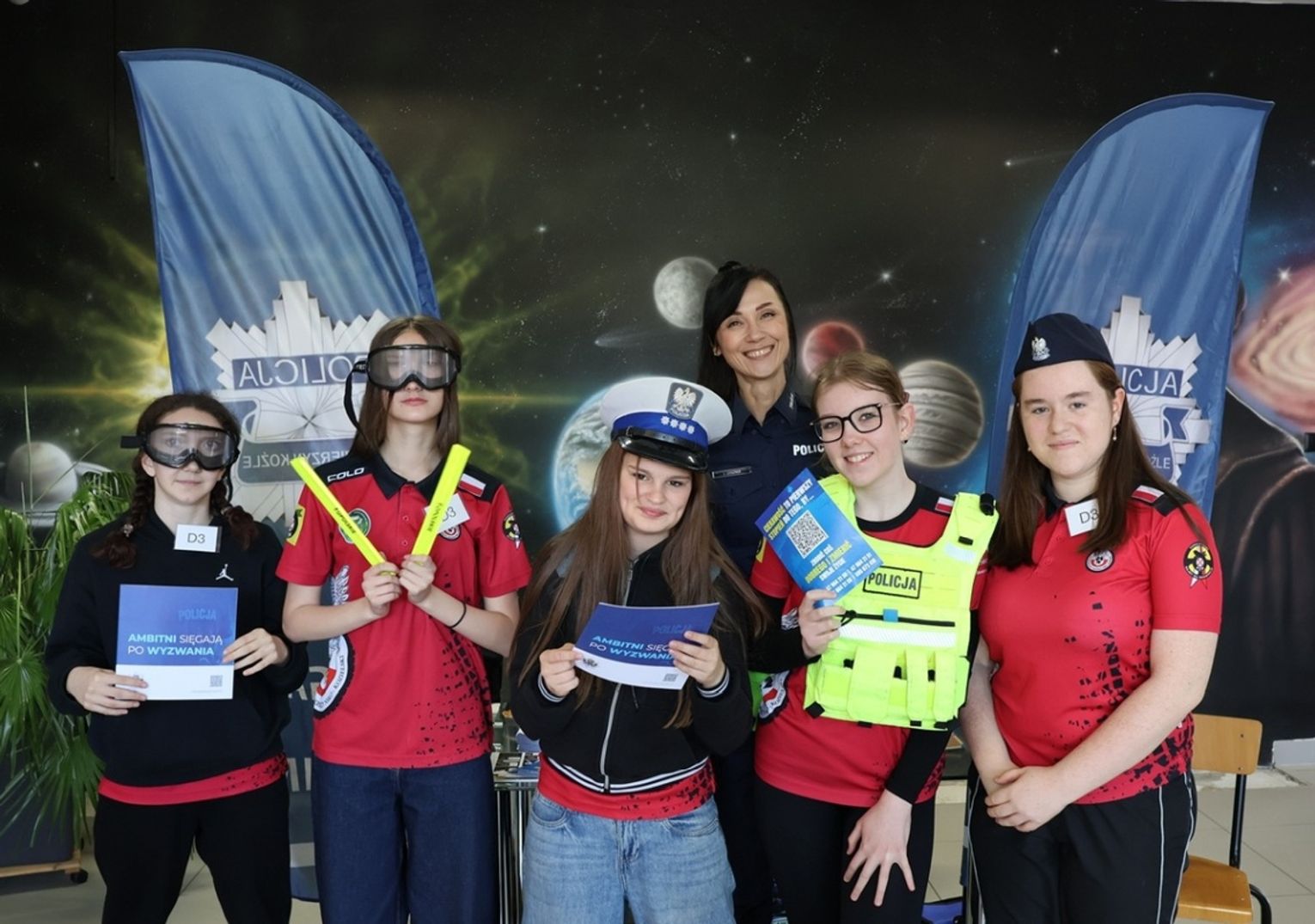 Funkcjonariusze promowali również zawód policjanta, przybliżając uczestnikom oraz ich opiekunom specyfikę służby w Policji. Zainteresowani mogli dowiedzieć się, jak wygląda proces rekrutacji, jakie wymagania należy spełnić oraz jakie możliwości rozwoju oferuje ta ścieżka zawodowa.