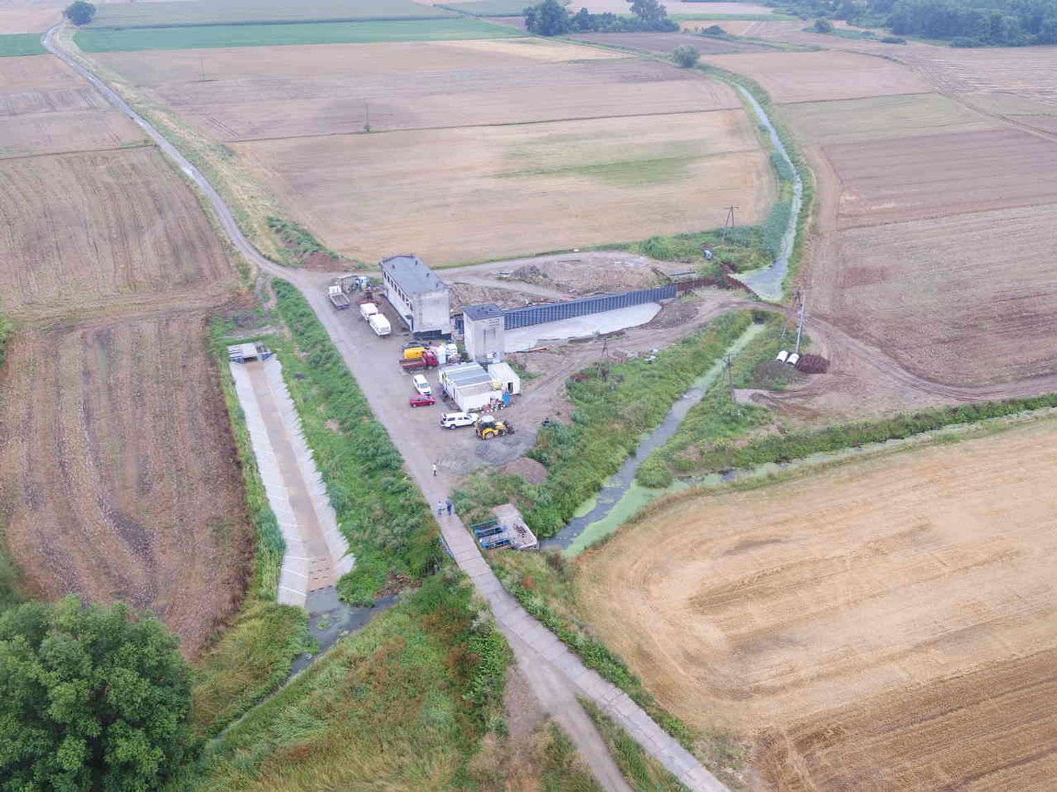 Uprzednio przygotowano obiekt na potrzeby prac budowlanych. Na polderze powstają kolejne kluczowe elementy zbiornika. Przede wszystkim rozebrany został istniejący zbiornik wyrównawczy. Przygotowano również podłoże pod konstrukcję nowego zbiornika, który powstanie w miejsce starego. Wykonano także dno konstrukcji pod budowlę wlotową do zbiornika wstępnego. Ponadto, odmulono dno budowli wylotowej, przeprowadzono jej reprofilację oraz oczyszczono koryto kanału odpływowego. Zdemontowano armaturę przepompowni, złożoną m.in. z 6 zestawów pompowych, wykonano reprofilację betonów na ścianach wszystkich komór czerpnych i ścianach wszystkich wlotów do tych komór. Reprofilacji poddano także całości ścian (bez sufitów) w hali pomp. Wykonano izolację i ocieplenie budynku przepompowni. Na ukończeniu są prace nad wykopaniem rowu, łączącego koryto rzeki Ryjec z Kanałem Półwieś.