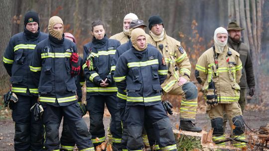Na szczęście to tylko scenariusz ćwiczeń o kryptonimie "KSAWERY 2021" zorganizowanych wspólnie przez Komendę Powiatową Państwowej Straży Pożarnej w Kędzierzynie-Koźlu, Powiatowe Centrum Zarządzania Kryzysowego oraz Nadleśnictwa Kędzierzyn. Wszystko zaczęło się w czwartek, 25 listopada o godzinie 8, kiedy to jednostki Ochotniczej Straży Pożarnej z Krajowego Systemu Ratowniczo-Gaśniczego w powiecie kędzierzyńsko-kozielskim dostały dyspozycję do zdarzenia. Początkowe miejsce koncentracji wyznaczono na placu Jednostki Ratowniczo-Gaśniczej nr 1 w Azotach, gdzie podczas odprawy komendant powiatowy PSP st. bryg. Piotr Dudek przywitał druhów i omówił plan działań. Następnie siły i środki udały się na teren leśny nieopodal wiaduktu przy ulicy Wojska Polskiego. Tam pracownicy Nadleśnictwa Kędzierzyn zrobili krótki pokaz pracy z piłą mechaniczną, a każdy ze strażaków spróbował swoich sił.